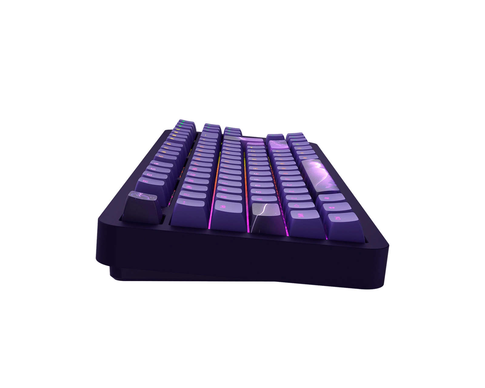 ALU87 Gaming Keyboard RGB ? Celestial er et tastatur fra Dark Project rettet mot spillere. Det har et tenkeyless design og er utstyrt med g3ms Voidstone-brytere. Designet inkluderer en aluminiumslegering som gir holdbarhet og stabilitet, mens polykarbonatplaten med flexcuts bidrar til å redusere støynivået. Tastaturet får sin akustikk fra Poron-demping under platen og PCBA, som skaper et mykt og stille tastetrykk. Tastehettene er i en CSA-profil, laget av høykvalitets ABS-plast, som sikrer langvarig holdbarhet og slitestyrke.Sammendrag