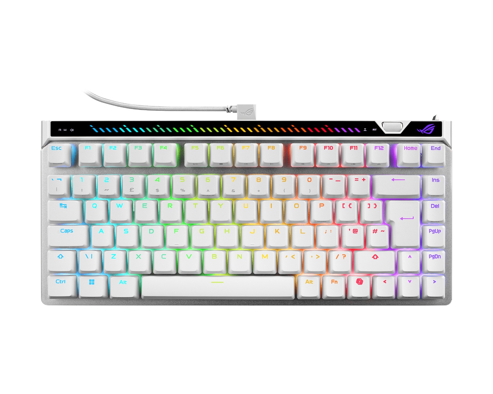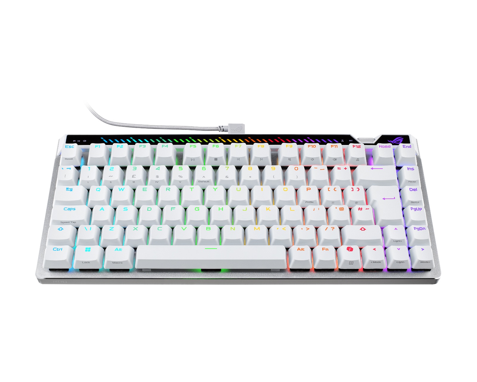 ROG Falchion Ace 75 HE er et gamingtastatur fra Asus som kombinerer avansert teknologi med komfort og stil. Med ROG HFX V2 magnetiske brytere tilbyr tastaturet en hot-swappable funksjon for enkel tilpasning av aktiveringspunkter mellom 0.1 og 3.5 mm. Den innebygde ROG Hall-sensoren forbedrer presisjonen i tastetrykkene dine, samtidig som den minimerer elektrisk støy for optimal ytelse.Byggekvaliteten er gjennomgående høy, med robuste ROG doubleshot PBT-tastkapsler som ikke bare føles bra under fingrene, men også er motstandsdyktige mot slitasje. Den ergonomiske designen inkluderer tre justerbare helningsvinkler og seks lag demping for å minimere lyd og ekko under bruk. Med en polling-rate på 8000 Hz oppnår tastaturet en respons på 0.125 ms, noe som betyr at det er opptil åtte ganger raskere enn konkurrentenes modeller. For intuitiv kontroll finnes et justeringshjul for å finjustere aktiveringspunkt og Rapid Trigger-følsomhet, sammen med en interaktiv panel for mediekontroll.