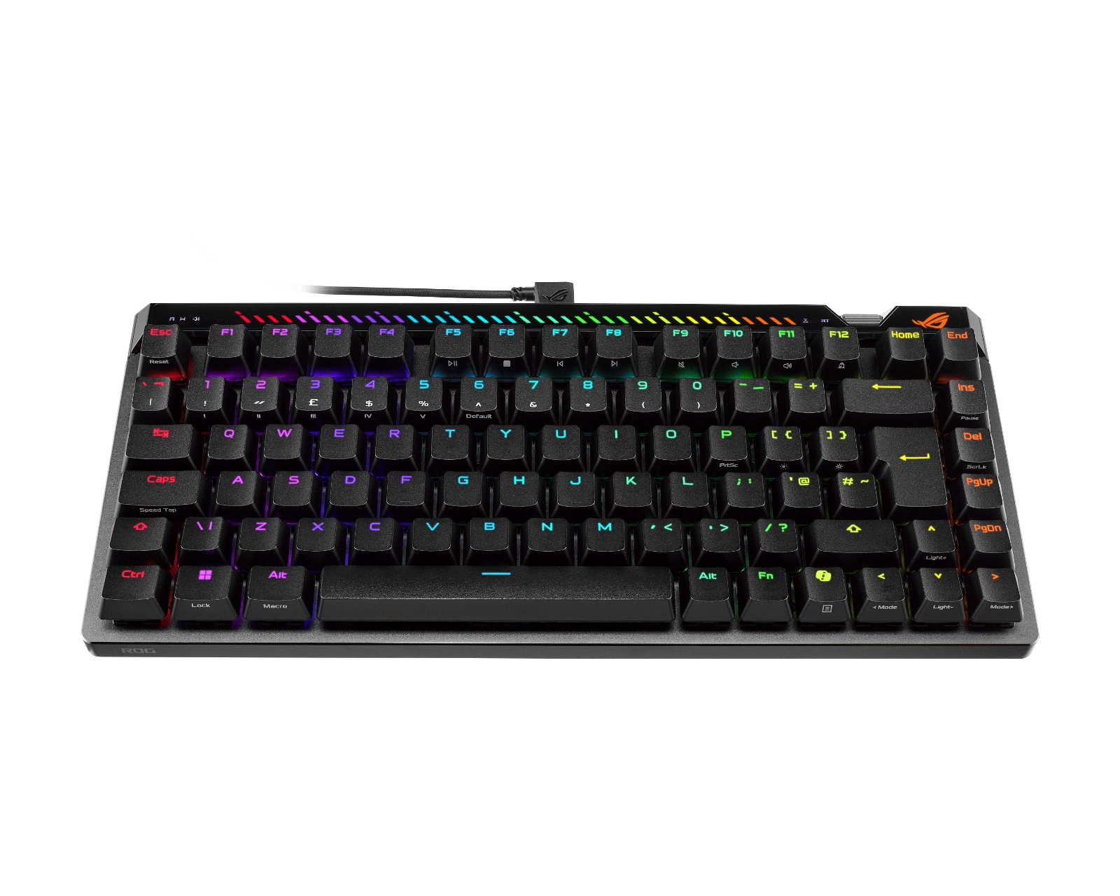 ROG Falchion Ace 75 HE er et gamingtastatur fra Asus som kombinerer avansert teknologi med komfort og stil. Med ROG HFX V2 magnetiske brytere tilbyr tastaturet en hot-swappable funksjon for enkel tilpasning av aktiveringspunkter mellom 0.1 og 3.5 mm. Den innebygde ROG Hall-sensoren forbedrer presisjonen i tastetrykkene dine, samtidig som den minimerer elektrisk støy for optimal ytelse.Byggekvaliteten er gjennomgående høy, med robuste ROG doubleshot PBT-taster som ikke bare føles gode under fingrene, men også er motstandsdyktige mot slitasje. Den ergonomiske designen inkluderer tre justerbare lutningsvinkler og seks lag demping for å minimere lyd og ekko under bruk. Med en polling rate på 8000 Hz oppnår tastaturet en respons på 0.125 ms, noe som betyr at det er opptil åtte ganger raskere enn konkurrentenes modeller. For intuitiv kontroll er det et justeringshjul for å justere aktiveringspunkt og Rapid Trigger-følsomhet, sammen med en interaktiv panel for mediekontroll.