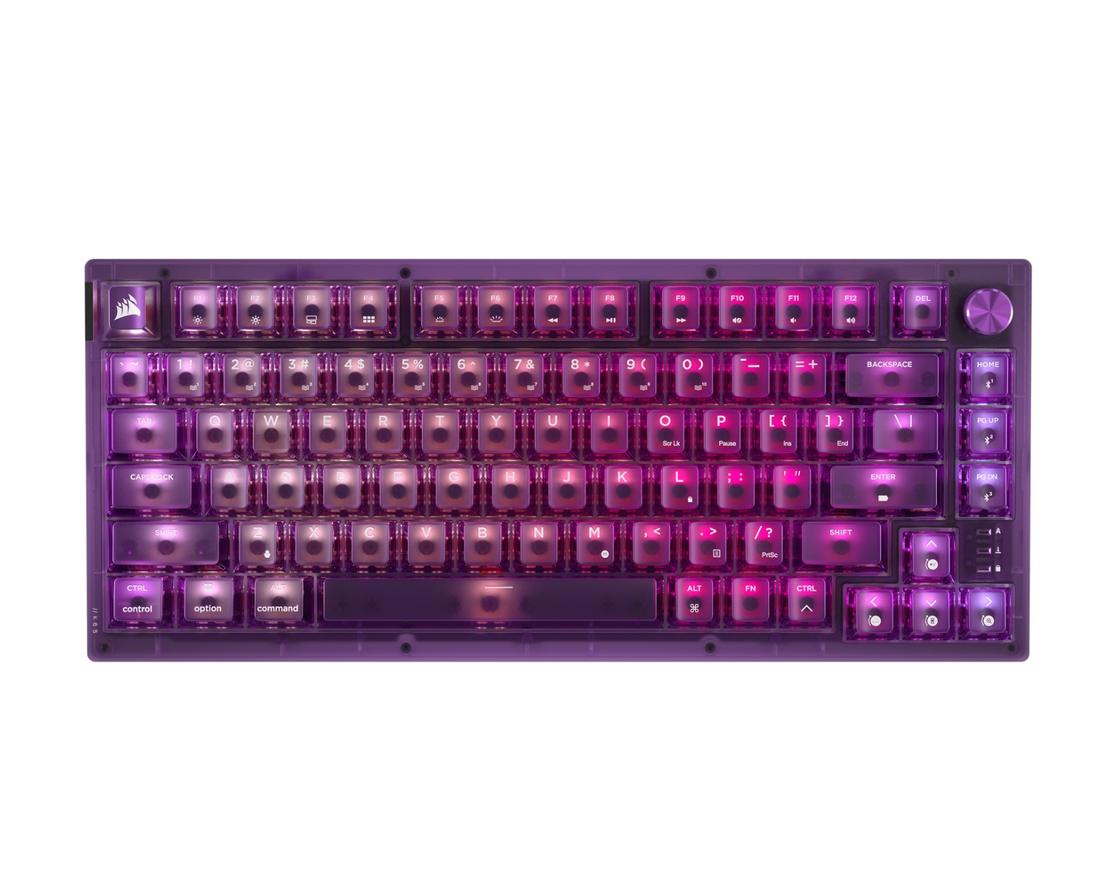 K65 PLUS er et kompakt trådløst gamingtastatur fra Corsair som tilbyr enestående ytelse og distinkt design med en gjennomskinnelig Atomic Purple-fargeinnstilling. Det er utstyrt med forsmurte lineære CORSAIR MLX Red v2-brytere som gir raske og smidige tastetrykk. I tillegg har tastaturet integrert lyddemping som effektivt reduserer uønsket lyd, noe som skaper en finjustert akustikk ideell for både spill og skriving.Byggekvaliteten i K65 PLUS er av høyeste klasse med en ramme som kombinerer styrke og stil. Tastaturet støtter flere tilkoblinger, inkludert ultrasnabb 2,4 GHz trådløs kommunikasjon og Bluetooth®, som gir allsidighet ved bruk med PC, Mac og konsoller. Batteritiden er imponerende, med opptil 266 timers lading, noe som sikrer at gamere kan spille lenge uten å måtte tenke på å lade. Ved å utnytte disse funksjonene, tilbyr K65 PLUS en stor brukeropplevelse som går hånd i hånd med profesjonelle krav.