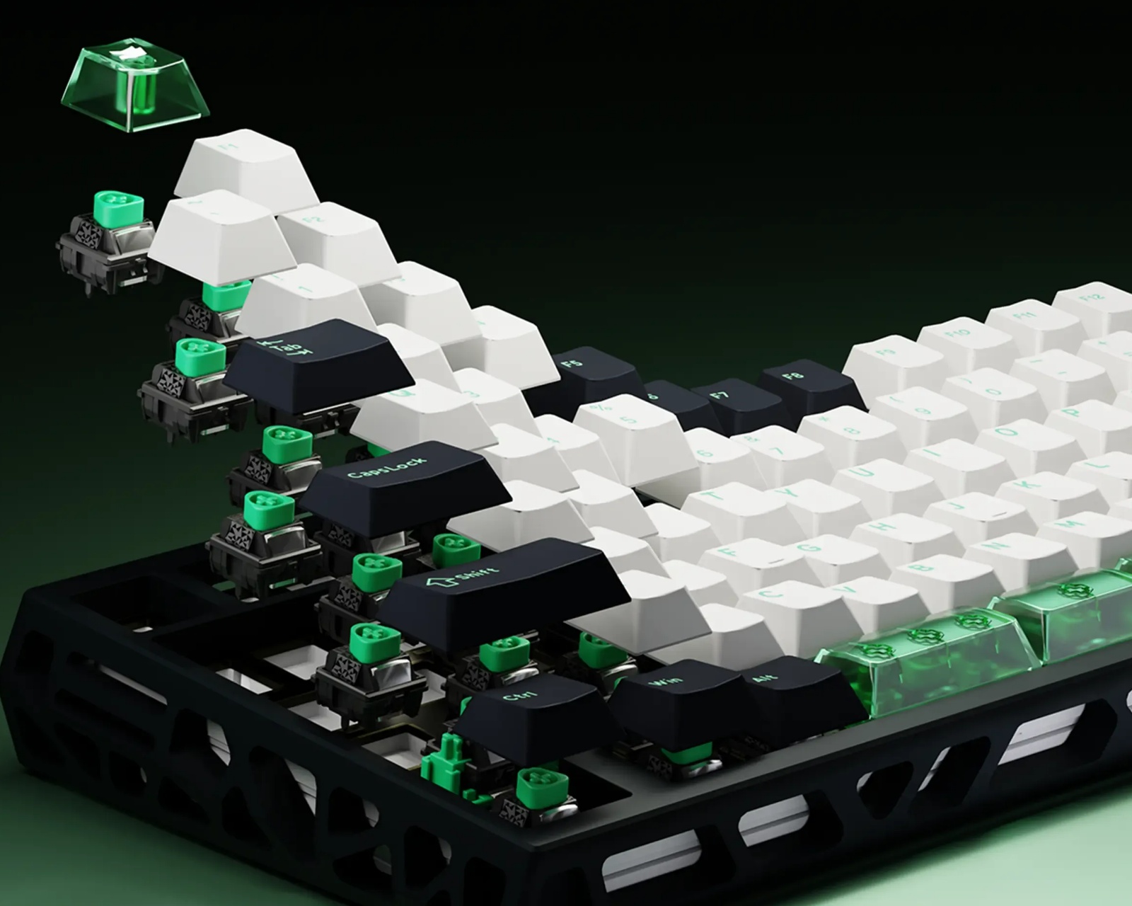 GATERON × Sikakeyb FORT 75 Magnetisk Tastatur er et tastatur fra Gateron som tilbyr en kombinasjon av høy presisjon og lang holdbarhet. Med en unik triangulær struktur hos bryterne sikres konstant aktivering uten misclicks. Tastaturet har også et vanntett PCB med full nano-coating som beskytter mot søl, noe som opprettholder funksjonaliteten over tid. Tastene bruker Gaterons magnetiske-jade delta Light-brytere, som bidrar til stabilitet og rask aktivering.Pollingfrekvensen på opptil 8K garanterer raske og responsive tastetrykk, noe som er spesielt fordelaktig for konkurransespilling. Det er også mulig å tilpasse belysningen og tastene for å matche brukerens preferanser. Det patenterte tri-stage split space bar-systemet muliggjør også tilpasning av snarveier for hver del, noe som gir spillere en fordel ved å muliggjøre raskere utførelse av flere handlinger.