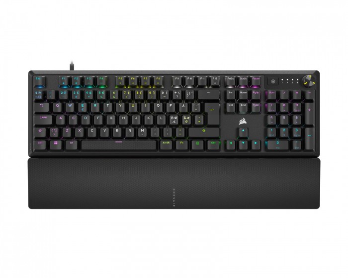 K70 CORE-spilltastaturet fra Corsair er et mekanisk kablet tastatur. Med Corsairs egne røde lineære brytere får du en eksepsjonell spill- og skriveopplevelse. K70 Core har to lag med lydabsorberende skum for å redusere uønskede lyder og med sin aluminiumsramme får du et premium tastatur.Det som er så annerledes med denne er at Corsair har lagt til et hjul som er multifunksjonelle og programmerbare medieknapper som kan stilles inn i deres iCUE-programvare. I iCUE kan du også justere og tilpasse RGB-lyset og kan lagre forskjellige lys- og makroinnstillinger, du kan ha opptil fem profiler.