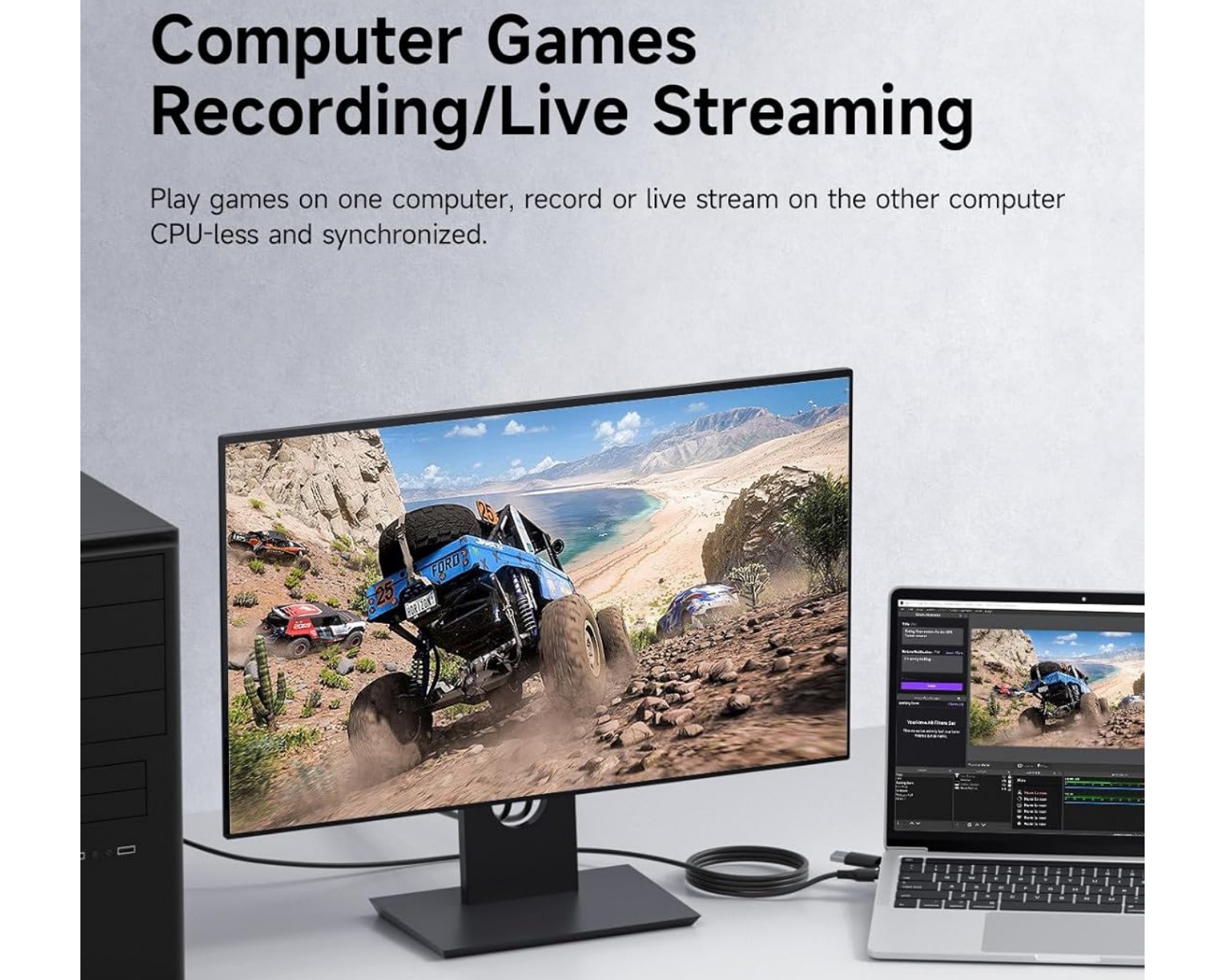 Hagibis videokort UHC10 er en enhet for videoinnspilling og streaming. Den har en dual interface-design som gjør det mulig å koble til både USB A og USB C, noe som letter bruken med en mengde forskjellige enheter som bærbare datamaskiner, mobiltelefoner og VR-headset. Capture-kortet støtter HDMI-inngang og tilbyr 1080P ved 60 fps for høy kvalitetsinnspilling og livestreaming.Byggkvaliteten er robust og portabel, noe som gjør det enkelt å bruke både innendørs og utendørs. Enheten krever ingen ekstern strømforsyning og fungerer plug-and-play, noe som forenkler brukeropplevelsen. Hagibis videokortet støtter 100W PD hurtiglading som er kompatibelt med Power Delivery 3.0 og Qualcomm Quick Charge protokoll, noe som muliggjør samtidig lading under bruk. Den er kompatibel med Windows- og Mac-systemer samt ulike streamingapplikasjoner og enheter.