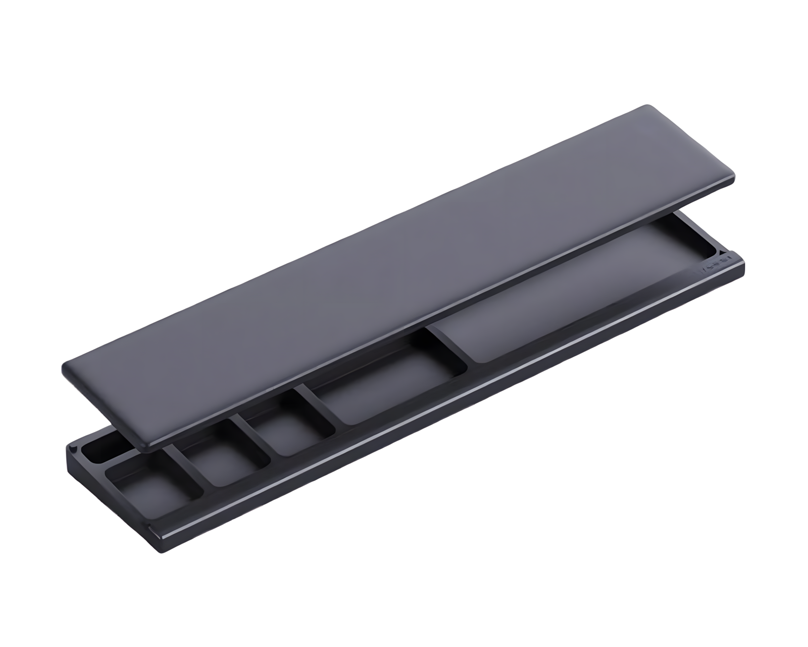 Tangentbordstøtte med oppbevaringsveske er et håndleddstøtte fra Hagibis, designet for bruk under datarbeid. Den tilbyr en inndelt lagring som letter håndteringen av små gjenstander på skrivebordet, noe som bidrar til en strukturert arbeidsplass. Produktet er spesifikt designet for å gi ergonomisk støtte under lange skriveperioder.Håndleddstøtten har en myk og elastisk konstruksjon, laget av høykvalitets kunstlæremateriale og fylt med et nøye utvalgt høykvalitets svammateriale. Det gir en behagelig følelse og motstand mot deformasjon over tid. Dens skrådesign sikrer en naturlig avslapning av håndleddet, noe som reduserer trykket ved bruk. Håndleddstøtten passer godt inn i kontormiljøer, der den gir naturlig støtte og øker komforten under arbeid.