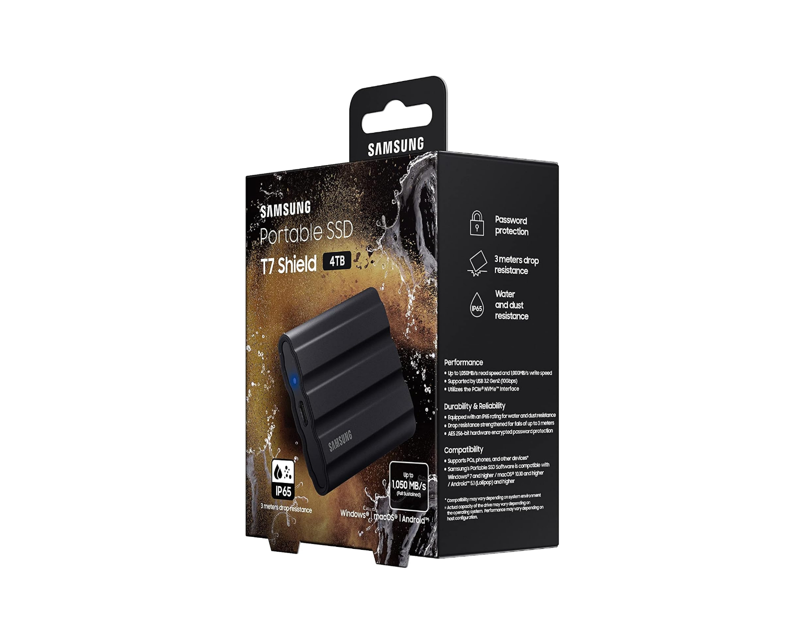 T7 SSD er en ekstern SSD-harddisk fra Samsung med en kapasitet på 4 TB. Enheten tilbyr lese-/skriveoverføringshastigheter på opptil 1 050 MB/s, noe som gjør det mulig å kopiere og sikkerhetskopiere store mengder data raskt. Den robuste designen er IP65-klassifisert, noe som beskytter mot vann og støv. Den kobles til med en reversibel USB type-C-kabel, som forenkler tilkoblingen uten å måtte bekymre seg for å få kabelen riktig vei, og USB-C 3.2-grensesnittet muliggjør høy båndbredde for rask dataoverføring.Oppsummering