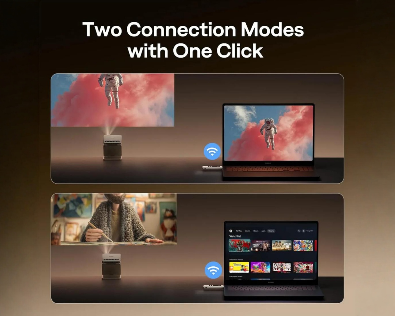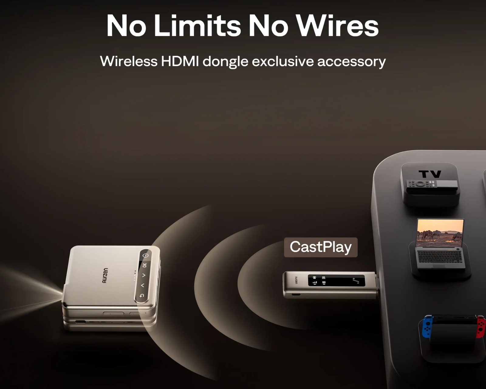 CastPlay Trådløs HDMI-adapter fra Aurzen som muliggjør trådløs streaming av innhold til prosjektorer. Denne dongelen støtter opptil 1080P/60Hz HD-utgang med 4K dekoding og leverer en stabil trådløs overføring på opptil 30 meter. Med sin plug-and-play-design kreves ingen installasjon av apper eller Wi-Fi for å begynne å bruke enheten.Enheten eliminerer problemet med svarte skjermer ved casting av DRM-beskyttet innhold fra plattformer som Netflix og Disney+. Den er bygd for å være brukervennlig, noe som gjør at du enkelt kan speile eller utvide skjermer fra en mengde ulike enheter, inkludert datamaskiner, spillkonsoller og TV-bokser. Ved å bruke 2.4G/5G-teknologi opprettholder dongelen en pålitelig og stabil tilkobling selv ved hindringer og opptil 100 fot unna.