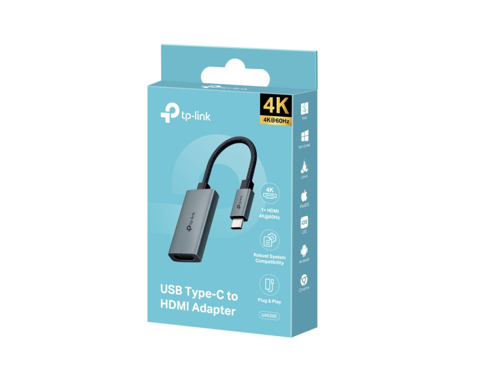 UA520C USB Type-C til HDMI-adapter fra TP-Link, designet for å enkelt koble enheter med USB-C til HDMI. Med støtte for MacBook Pro og iPad Pro, tilbyr denne adapteren en sømløs overgang mellom USB-C-porten og en HDMI-tilkobling, uten behov for ekstra installasjon. Den er kompatibel med flere operativsystemer, inkludert MacOS, Windows, iPadOS, iOS, Android, Linux OS og Chrome OS.UA520C er bygget med en fleksibel 100 mm flettet kabel, noe som gjør det mulig å frigjøre viktige portplasser på enhetene dine for bedre bruk og ytelse. Den robuste aluminiumslegeringen i kabinettet og den flettede kabelen sikrer holdbarhet samtidig som den kompakte designen gjør den lett å transportere. UA520C oppfyller kravene for dagens brukere og garanterer at du får en både holdbar og praktisk løsning for HDMI-tilkobling.