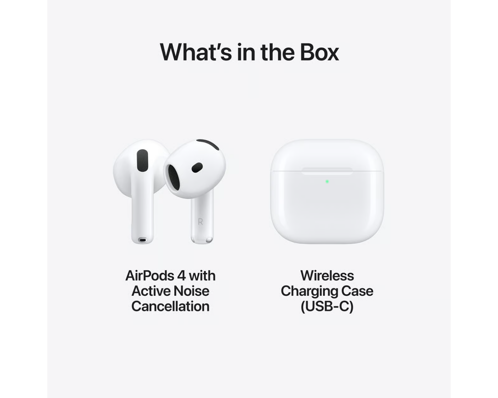 AirPods 4 er trådløse in-ear hodetelefoner fra Apple som tilbyr aktiv støyreduksjon (ANC) for effektivt å stenge ute omgivelseslyder. Med et helt nytt avrundet design og funksjoner som romlig lyd med dynamisk hodesporing, gir disse hodetelefonene en førsteklasses lytteopplevelse. Brukere kan forvente opptil fem timers lytting på en enkelt ladning, med ytterligere 30 timer tilgjengelig via det medfølgende ladetilfellet.Hodetelefonene er utstyrt med H2-brikken og oppgraderte mikrofoner som bidrar til å redusere lavfrekvent støy. De tåler svette og vann, og har blitt testet for å oppfylle IP54-standarden for motstand mot støv og fukt under normale forhold. Trykksensoren gir smidig kontroll over avspilling og samtaler, og rask tilgang til Siri gjør det enkelt å styre enheten med talekommandoer. Ladetilfellet muliggjør også trådløs lading via Qi-sertifisert teknologi.