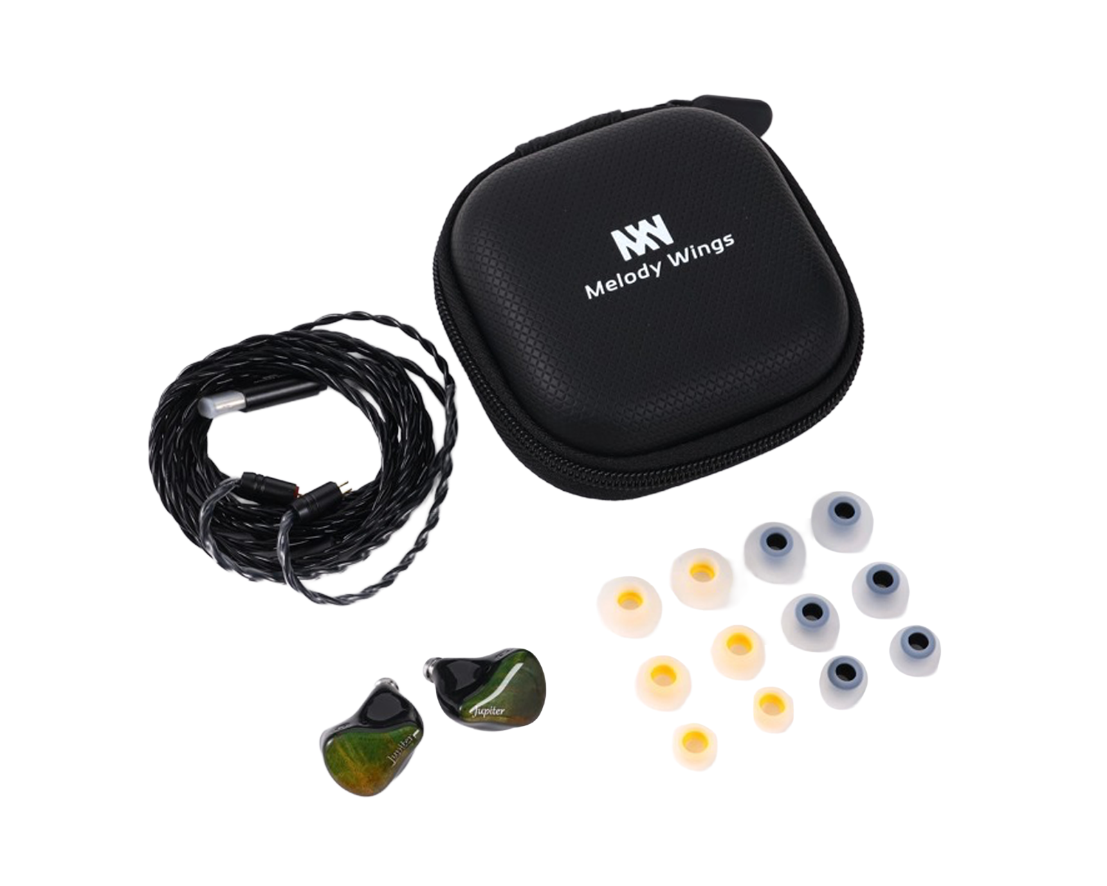 Jupiter 1DD IEM er in-ear hodetelefoner fra Melody Wings som tilbyr høy lydkvalitet. Denne modellen har en impedans på 32 ohm og en følsomhet på 102 dB. Med en sølvbelagt kabel på 1,4 m og en USB-C kontakt, er den designet for bruk med moderne enheter.Hodetelefonene er bygget med en kombinasjon av svart harpiks og en tremunnstykke, noe som ikke bare gir en estetisk touch, men også bidrar til lydprestasjonen. Den nøye utformede konstruksjonen sikrer god lydisolering og komfort for brukeren. Resinskalet gir holdbarhet, mens treet leverer en mer naturtro lydkarakter. Disse hodetelefonene er designet for både gaming og musikklytting, noe som gjør dem allsidige for ulike bruks situasjoner.