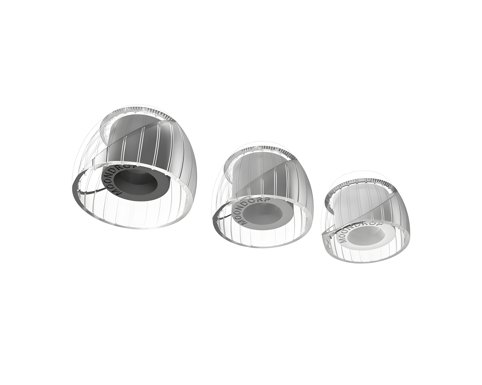 Moondrop Spring Tips er ørepropper av silikon designet for IEMs (in-ear monitors) fra Moondrop. Disse øreproppene tilbyr optimal passform og finnes i fire størrelser med en diameter som er kompatibel med munstykker mellom 4,8 mm og 6,4 mm. Materialet er medisinsk silikongel, som kombinerer mykhet og elastisitet for en behagelig lytteopplevelse.Spring Tips bruker en akustisk veggguide-struktur, som er bekreftet gjennom FEA (finite element method). Denne designen minimerer resonansen av lydbølger i mellomregister og diskant, noe som resulterer i en jevnere frekvensrespons for toppene. Den radialt doble støttestrukturen sikrer at proppene tilpasser seg perfekt til hørekanalen, noe som hindrer at de kollapser og at basslekkasje skjer til andre frekvenser. Dette gir en mer naturlig lydpresentasjon med en behagelig passform.
