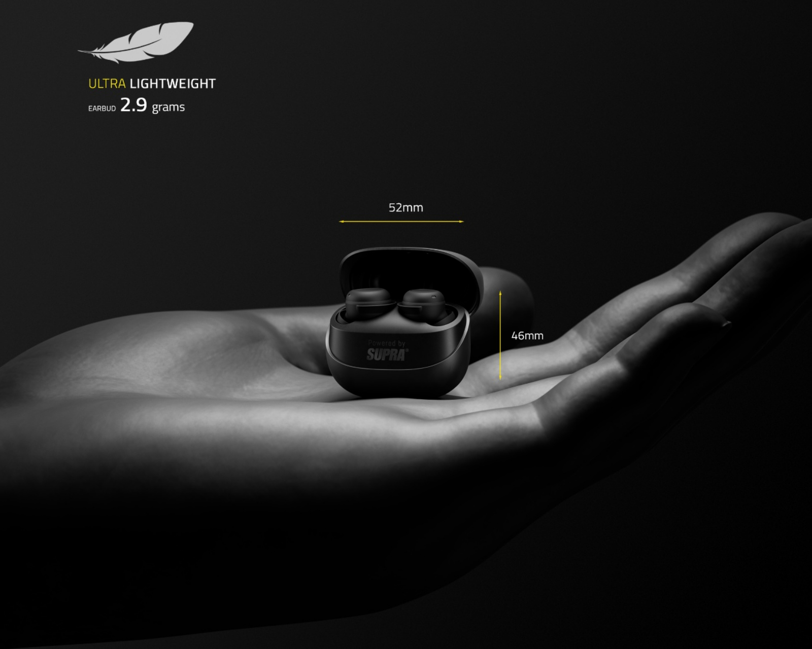 SUPRA ZERO-TX2 Mini TWS er ultrakompakte in-ear hodetelefoner fra Supra. De har et design som muliggjør lav vekt på kun 2,9 gram per ørepropp og leverer over 25 timers spilletid gjennom det medfølgende ladetilfellet på 30 gram. Hodetelefonene er IPX5-sertifisert for å tåle svette og regn, og passer både til gymmet og på jobben.ZERO-TX2 Mini er konstruert av militære klassede materialer, noe som garanterer holdbarhet og robusthet. Lyden er utviklet i henhold til SUPRAs prisbelønte lyddesign for å levere kraftig og dynamisk lydgjengivelse med imponerende bass. Double ENC-mikrofoner med MEMS™-teknologi bidrar til å minimere forstyrrende bakgrunnslyd, noe som gir klar talelytting. Med smarte touch-kontroller kan brukeren enkelt styre samtaler og musikk, samt aktivere taleassistenter som Google™ eller Siri™. I tillegg støtter hodetelefonene TWS Mono-funksjonen for bruk av en hodetelefon om gangen.