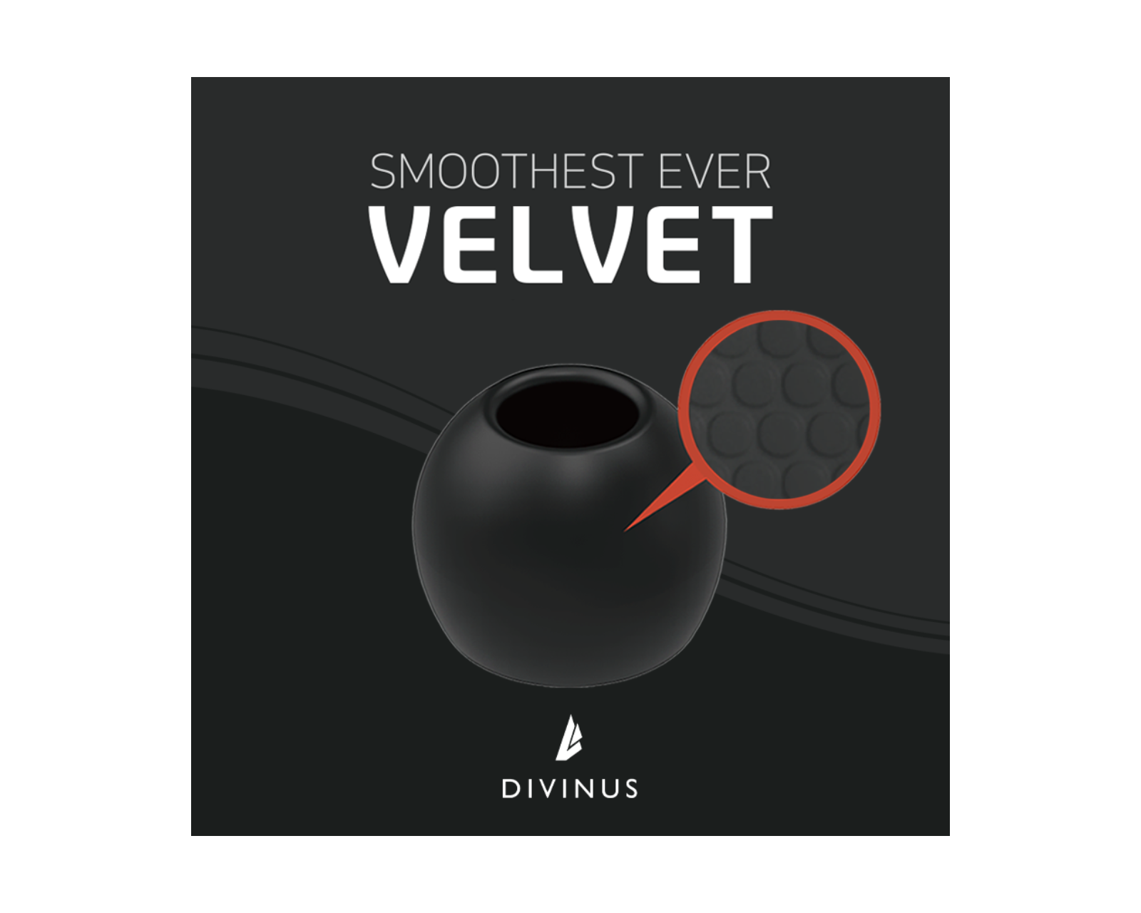 Velvet er et sett med in-ear-propper fra Divinus som tilbyr en tilpasset opplevelse for lydentusiaster. Det inkluderer et par mellomstore propper som er designet for å passe alle som ønsker forbedret lydisolering og komfort under lengre lytteøkter. Med nøye utformede materialer og konstruksjon bidrar disse in-ear-proppene til å optimalisere lydkvaliteten for både musikk og spilling. Velvet in-ear-proppene er designet for å fungere med hodetelefoner som har en utgangsdiameter (dyse) på 3 til 5 mm.In-ear-proppene er laget av myk og fleksibel silikon, som gjør at de kan formes etter ørenes unike konturer og gi en sikker, men komfortabel passform. Denne typen konstruksjon bidrar til å redusere omgivelsesstøy og skape en mer fokusert lydopplevelse. Hver pinne har også en holdbarhet som fremmer langvarig bruk, noe som er av stor betydning for gameren eller musikkelskeren. De er også enkle å rengjøre og vedlikeholde, takket være materialvalget.