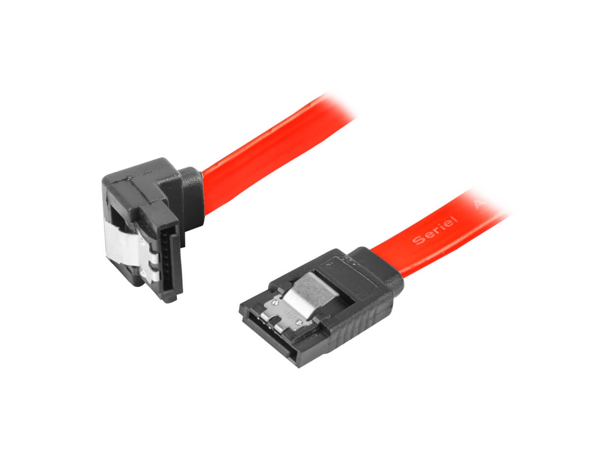 Sort SATA 3-kabel med vinklet kontakt. 30 cm lang med metallklips. SATA III (revisjon 3.x)-grensesnitt, formelt kjent som SATA 6Gb/s, tredje generasjons SATA-grensesnitt som kjører på 6,0Gb/s. Båndbreddegjennomstrømningen, som støttes av grensesnittet, er opptil 600MB/s. SATA 3-grensesnittet er bakoverkompatibelt med SATA 3 Gb/s-grensesnittet.