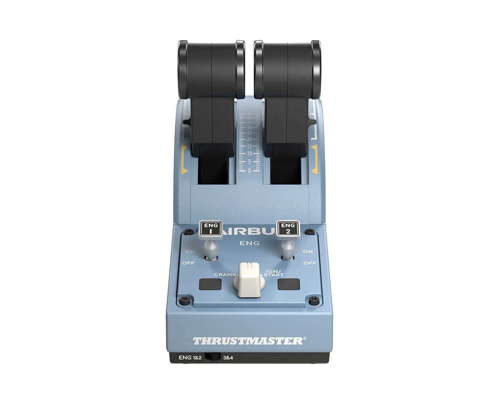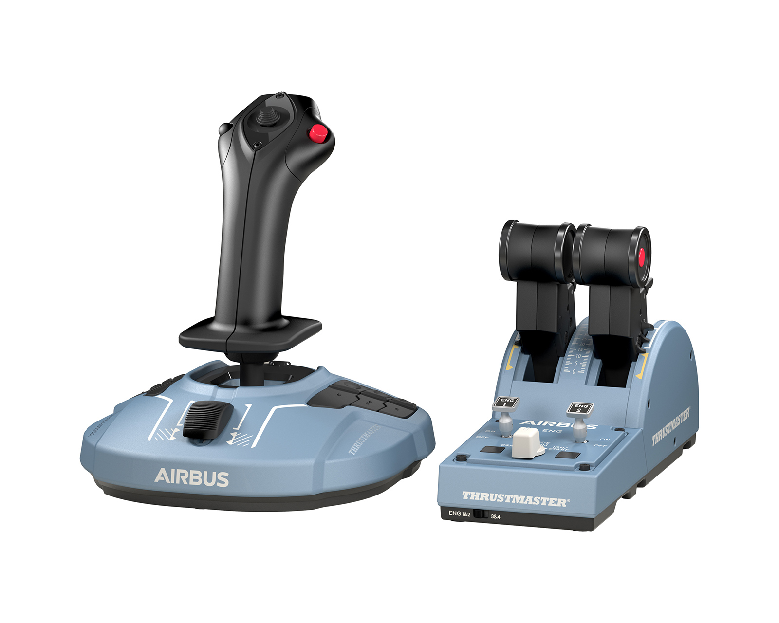 - Ergonomiske 1:1-replikaer: - Utformingen av sidespaken og gasskvadranten er inspirert av flykontrollenhetene som finnes på ikoniske Airbus-fly, som er offisielt lisensiert av Airbus.