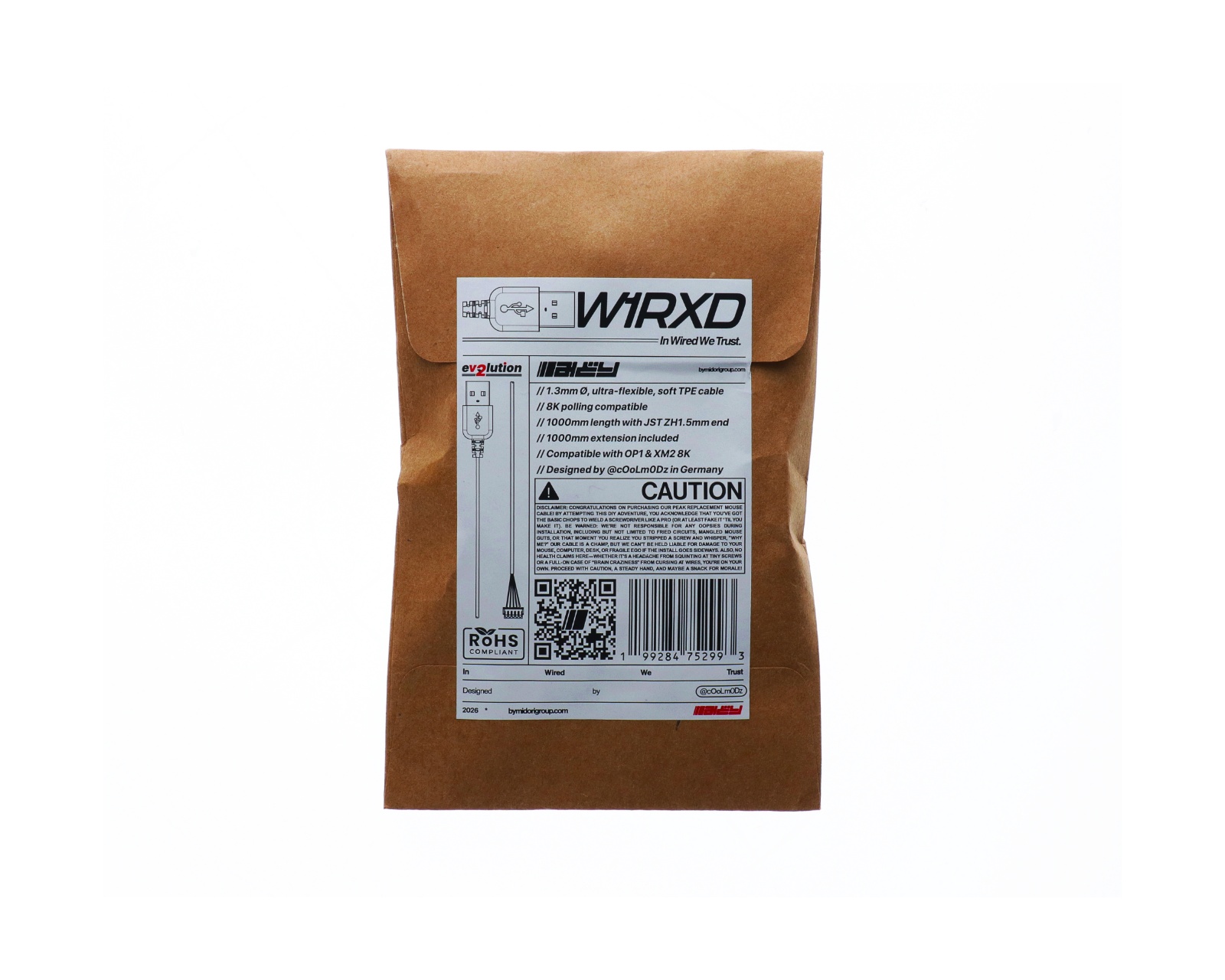W1RXD eV2lution er et fleksibelt TPE-kabel med en diameter på 1,3 mm som er fullt kompatibel med 8K polling rate, noe som sikrer raske og responsive signaler under spilling.Den 1000 mm lange hovedkabelen kommer med en 1000 mm lang svart forlengelseskabel, noe som gir ekstra fleksibilitet og bevegelsesfrihet. Ledningen er kompatibel med OP1 8k, OP1 8k V2 og XM2 8K samt XM2 8k V2.