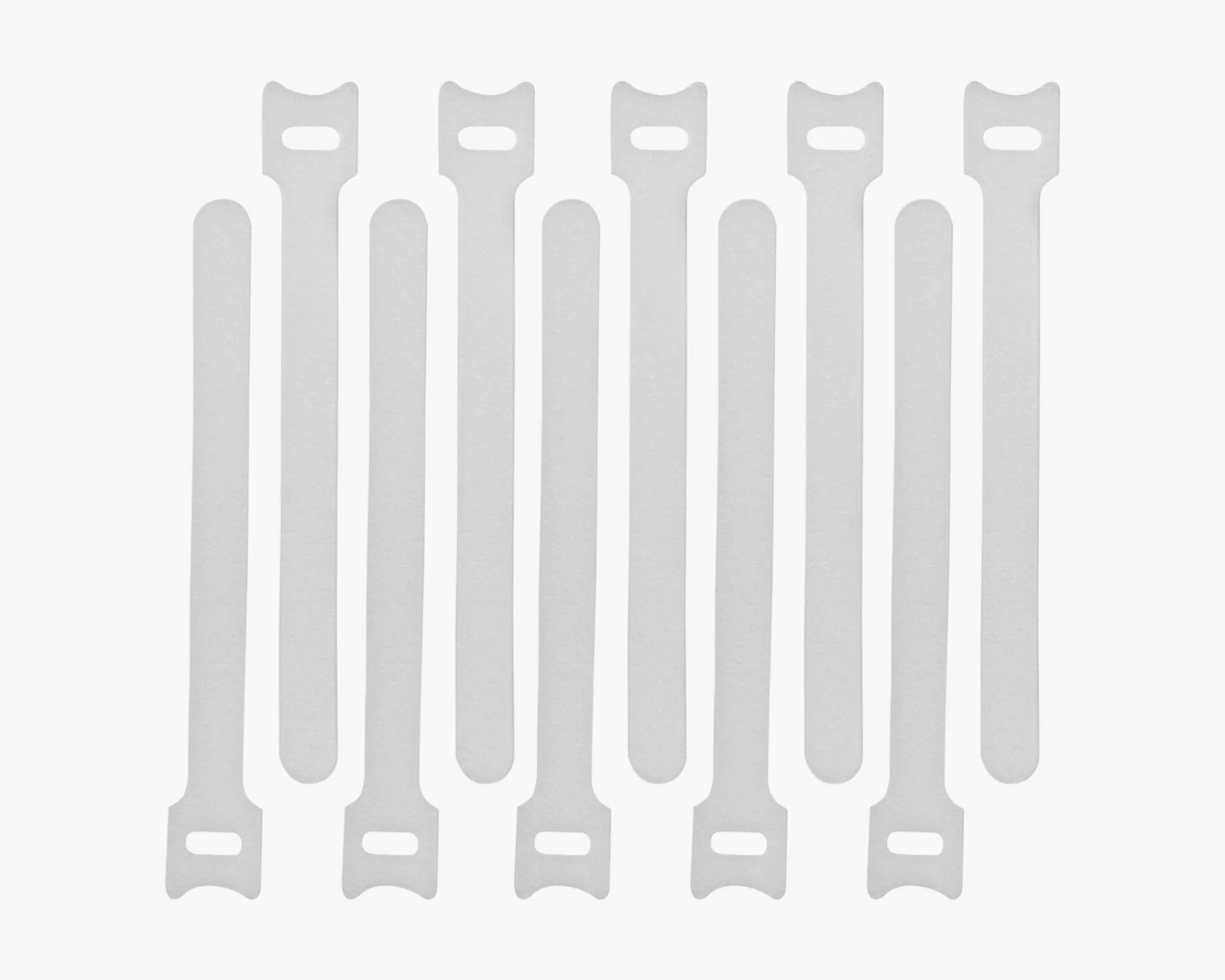 - Inneholder 5 kabelbeskyttere, 10 Velcro-kabelbånd og 4 kabelklips