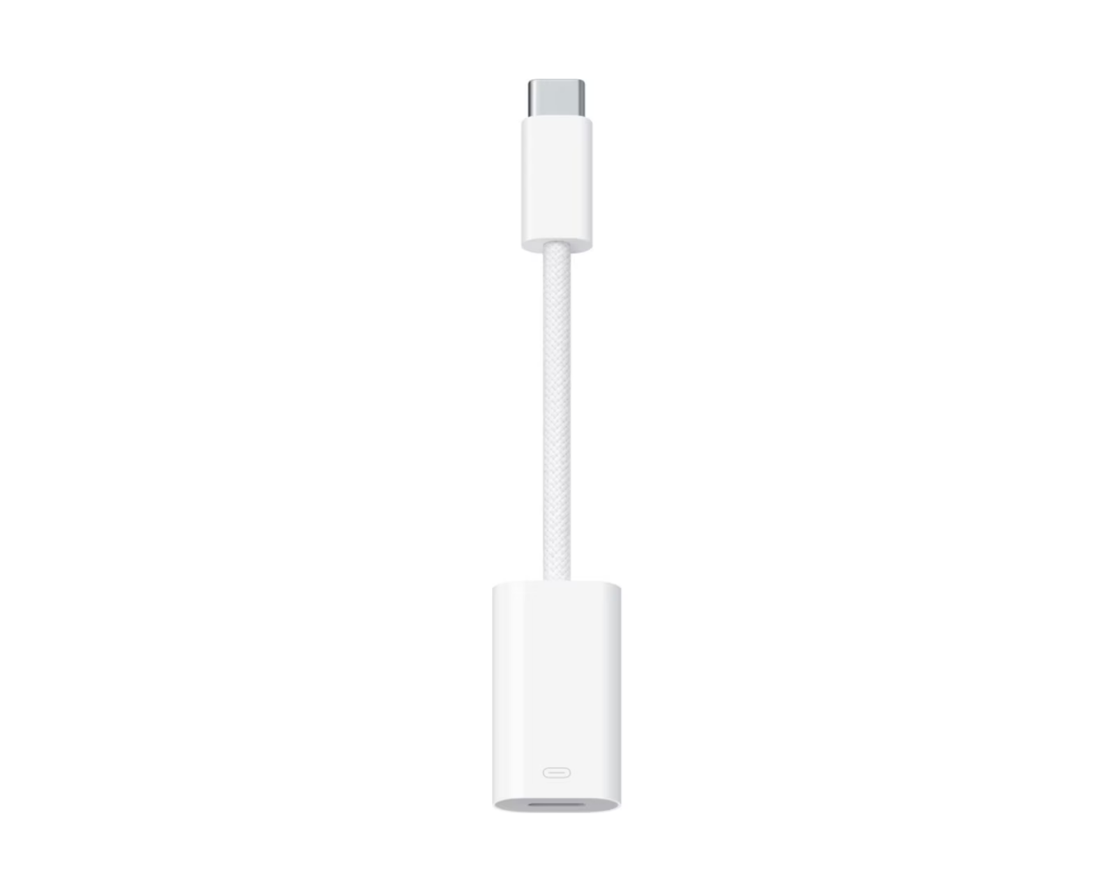 USB-C til Lightning-adapter er en kabel fra Apple som muliggjør tilkobling av Lightning-tilbehør til enheter med USB-C, som iPhone eller iPad. Denne adapteren legger til rette for overføring av data, lading og musikkavspilling med en enkelt kabel. Utstyrt med en slitesterk, flette kabel gir adapteren en stabil og holdbar bruk.Adapteren består av en USB-C-kontakt som kobles direkte til USB-C-porten på en iPhone eller iPad, noe som gjør det enkelt å koble til Lightning-enheter. Den gjør det mulig for brukere å koble til sine Lightning-tilbehør i ulike miljøer, inkludert kjøretøy med støtte for CarPlay. I tillegg kan en USB-kabel kobles direkte til adapterens USB-C-kontakt for å oppfylle forskjellige tilkoblingsbehov.