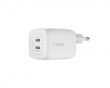 En 65W vegglader med doble USB-C-uttak som bruker den avanserte Dynamic PPS-teknologien for å optimalisere ladehastigheten og sikre at enhetene dine får akkurat den strømmen de trenger. Denne laderen er designet for å automatisk justere spenningen og strømstyrken basert på enhetens spesifikke behov, slik at den kan lade alt fra smarttelefoner til nettbrett effektivt og trygt.For å muliggjøre lading av en bærbar PC eller annen krevende enhet tilbys en strømforsyning på 65W ved tilkobling av kun én USB-C-port. Når to kabler er koblet til kan den øvre porten levere opptil 45W, noe som gjør den ideell for hurtiglading av enheten, mens den nedre porten kan gi opptil 20W, som er nok til å lade andre enheter samtidig. Denne fleksibiliteten gjør det mulig å administrere flere enheter effektivt uten at det går på bekostning av hastigheten.
