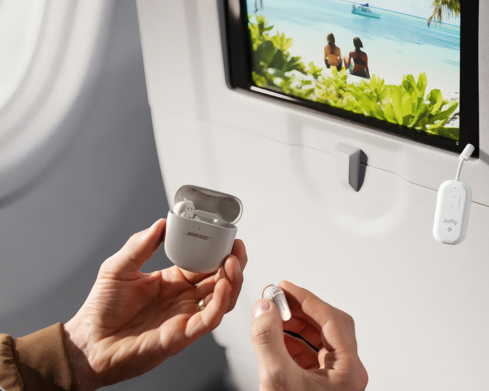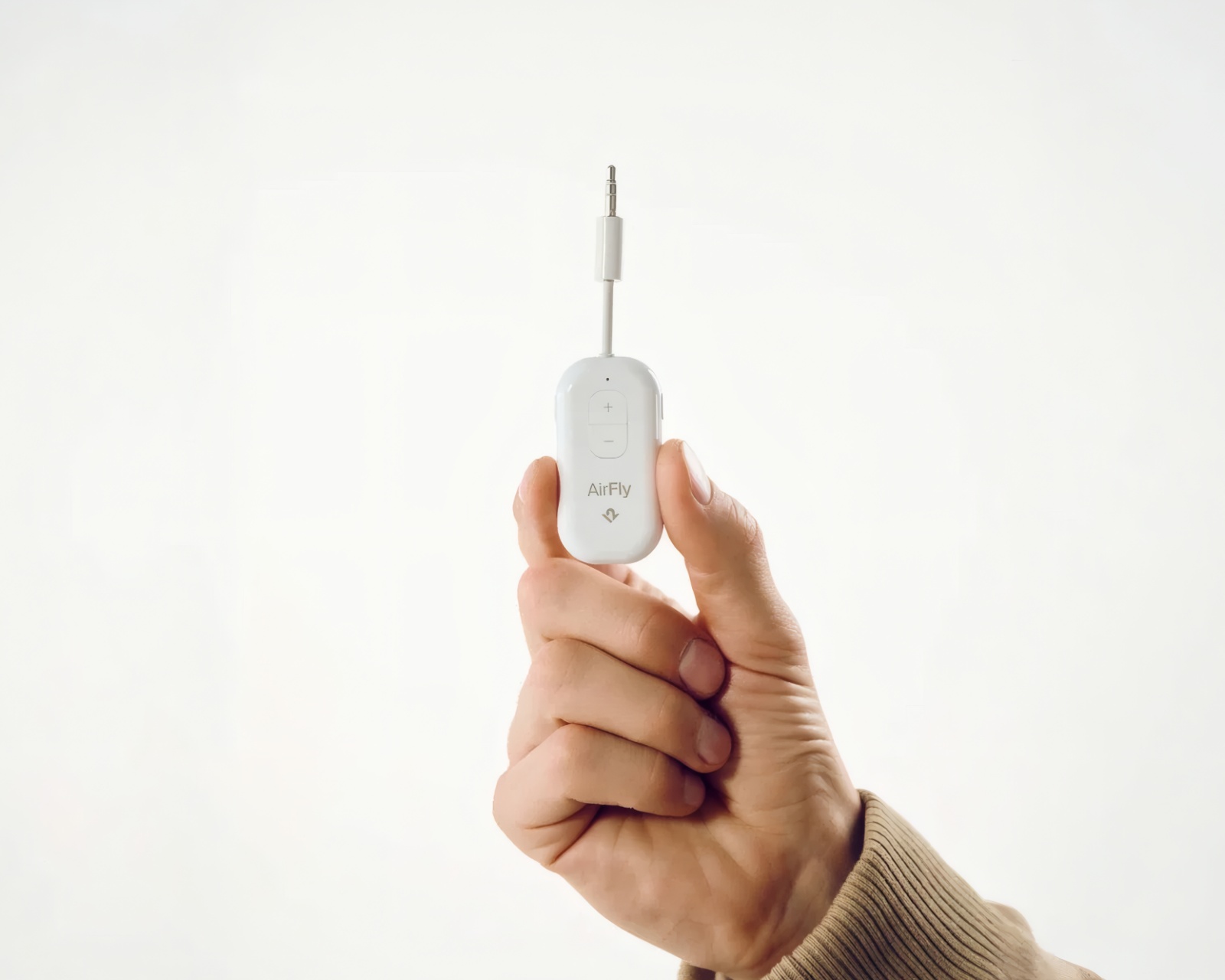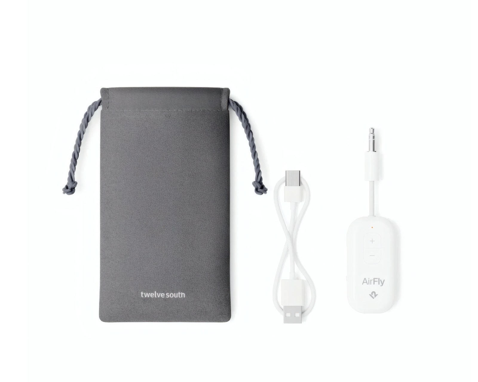 AirFly Pro 2 er en trådløs adapter for hodetelefoner fra Twelve South. Denne enheten muliggjør tilkobling av AirPods eller andre Bluetooth-hodetelefoner til alle enheter med hodetelefonutgang, for eksempel flysystemer, treningsutstyr og spillkonsoller. AirFly Pro 2 kan holde over 25 timer på en ladning og lades via USB-C.AirFly Pro 2 er kompakt og lett, noe som gjør transport og bruk enklere under reise. Den har to knapper for å pare opp til to trådløse hodetelefoner til en enkelt enhet, uten behov for en splittkabel. Enheten har også intuitive kontroller for volum og mute, samt en klart synlig batteristatusindikator. For deluxe-versjonen inngår en internasjonal flyadapter og en premium reisebag for optimal bruk på reise.