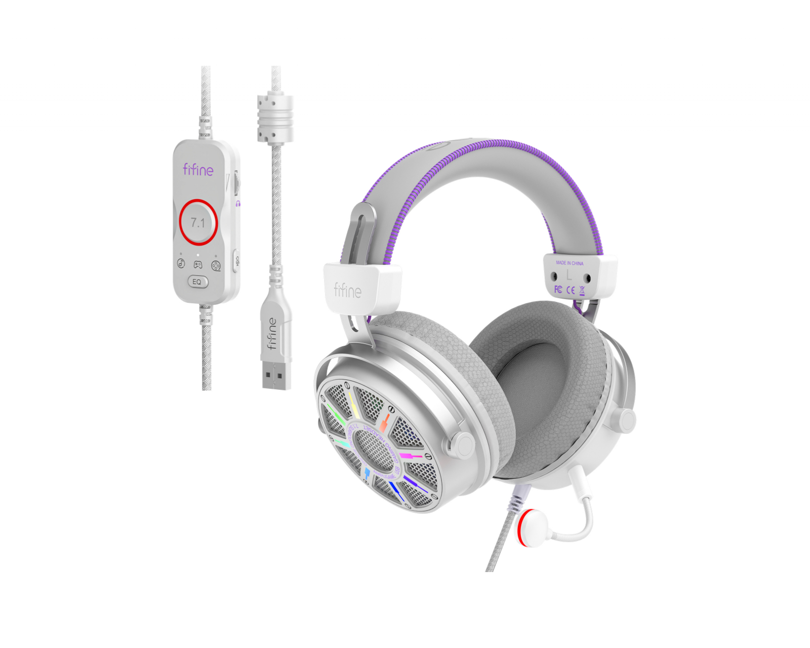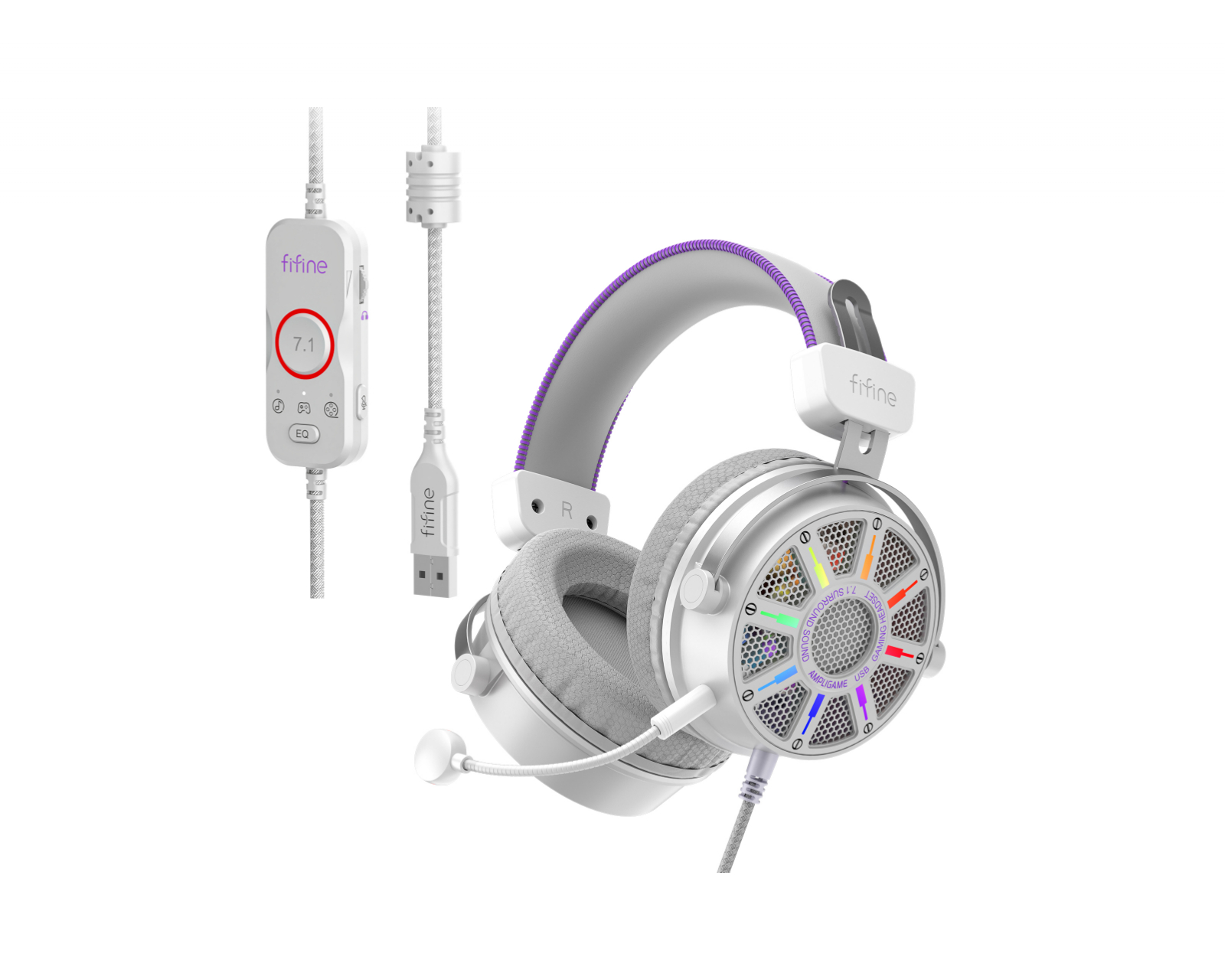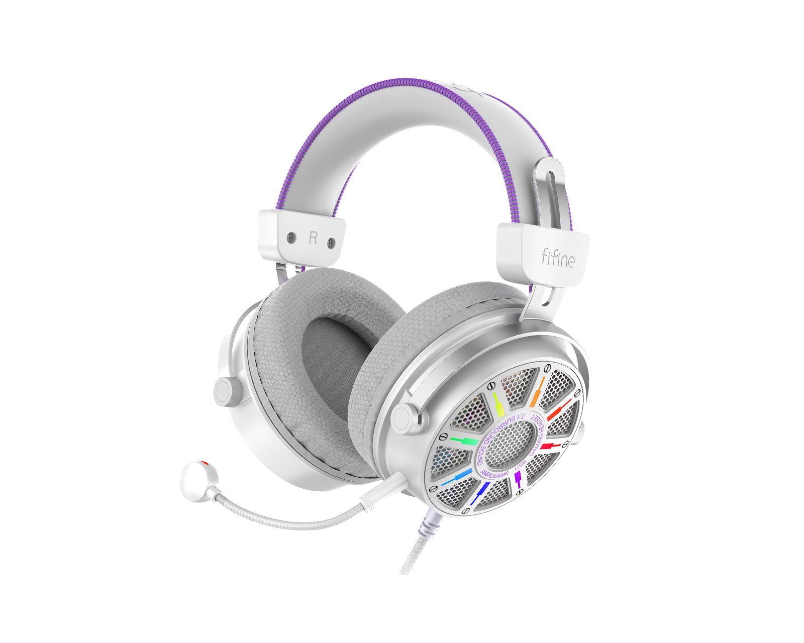 H19 er et gaming headset fra Fifine, utformet for å gi en overlegen lydopplevelse under spilling og streaming. Headsettet leverer 7.1 virtuell surroundlyd som gir et detaljert lydbilde og lar gamere høre nøyaktig hvor lyden kommer fra. Utstyrt med en avtakbar mikrofon, gjør den kommunikasjonen under spillets gang både klar og tydelig. H19s byggekvalitet er av høyeste standard, med myke øreputer som er designet for å gi komfortabel støtte under langvarige spillsesjoner.RGB-belysningen kan tilpasses, noe som gir gamere mulighet til å skreddersy sitt headset for å matche den øvrige utstyret. Med forskjellige EQ-innstillinger kan du også justere lydprofilen basert på hvilket spill du spiller, noe som gir en ytterligere nivå av tilpasning for å optimalisere lydopplevelsen. Hodebåndet er justerbart, noe som sikrer en perfekt passform for forskjellige hodeformer og gir høy ergonomi under bruk.