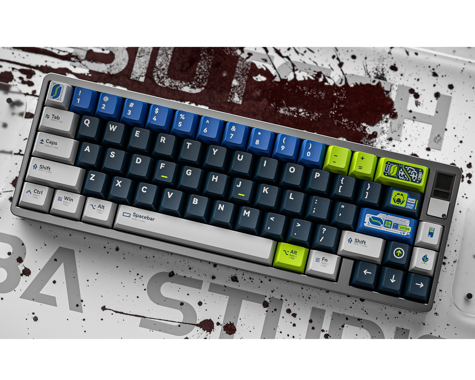 Designet til BIOTECH keycaps er inspirert av bioteknologiselskapet i "Cyberpunk 2077"-spillet. Et selskap som spesialiserer seg på genteknologi og bioteknologi, farmasøytiske produkter og mikrobiell forskning er modellert etter temaet for keycaps, og tilfører et snev av cyberpunk science fiction, som har en veldig sterk teknisk visuell innvirkning.- Produsent: ALOHAKB
