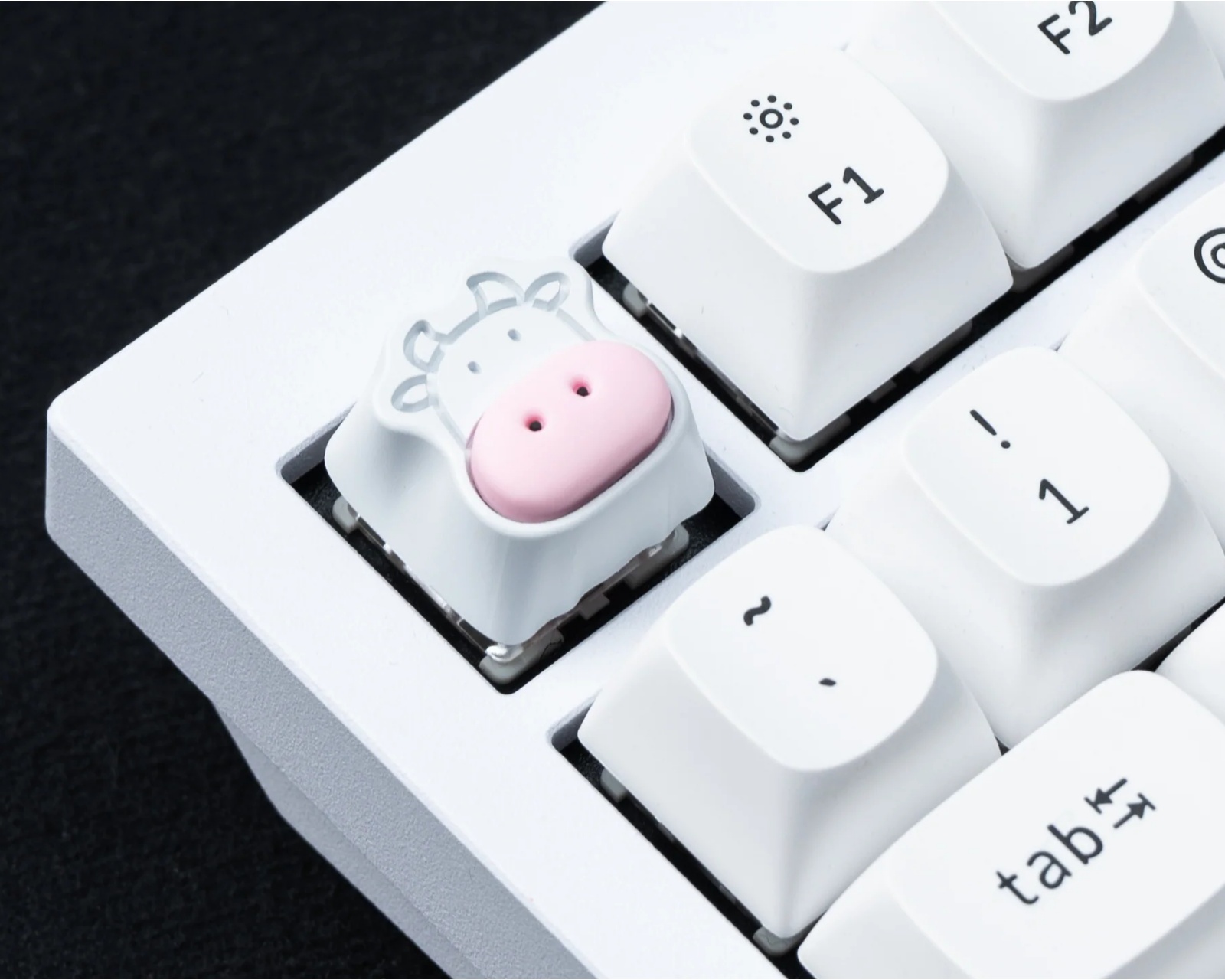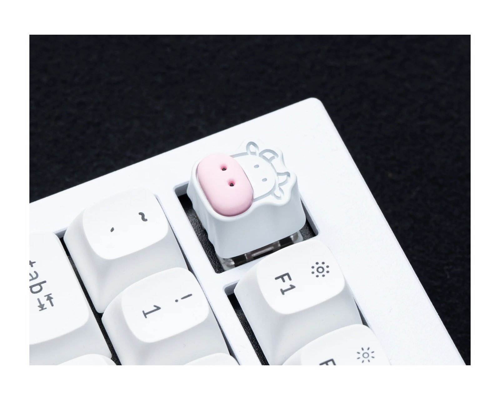 For et tastatur utenom det vanlige, prøv Keychron Cute Cow Silicone Aluminum Alloy Artisan Keycap. Nøkkelknappen i aluminiumslegering gir stabilitet og holdbarhet, silikonnesen er designet for å gi brukeren en behagelig følelse ved trykk. Denne knappen er CNC-gravert og gir både en unik følelse og et unikt utseende til tastaturet. Vekten på 4,2 gram og utseendet er perfekt for de som ønsker å tilpasse tastaturet sitt til noe eget.- Materiale: Aluminiumslegering, PC, silikon