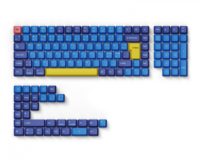 Keychron OEM Dye-Sub PBT Full Set Keycap Set Beach gir deg en moderne, strandinspirert estetikk som gir tastaturet ditt liv. Med PBT-materiale og femsidig fargesublimert PBT er nøklene synlige med enestående klarhet, samtidig som de garantert vil forbli attraktive i lang tid fremover. Kompatibel med 60 %, 65 %, 70 %, 75 %, 80 %, 96 % og 100 % tastaturoppsett og med en tykkelse på 1,6 mm.- Materiale: PBT
