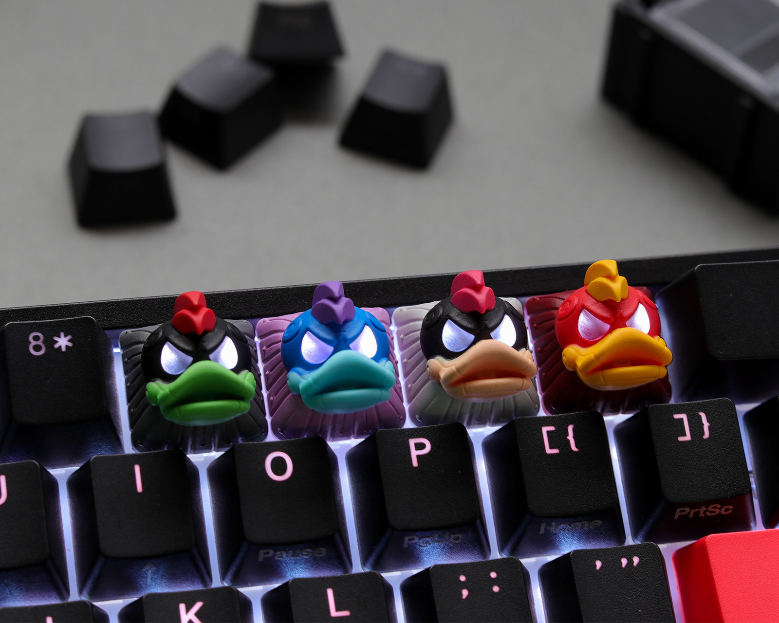 - Tastene er gjennomsiktige (skinner gjennom)