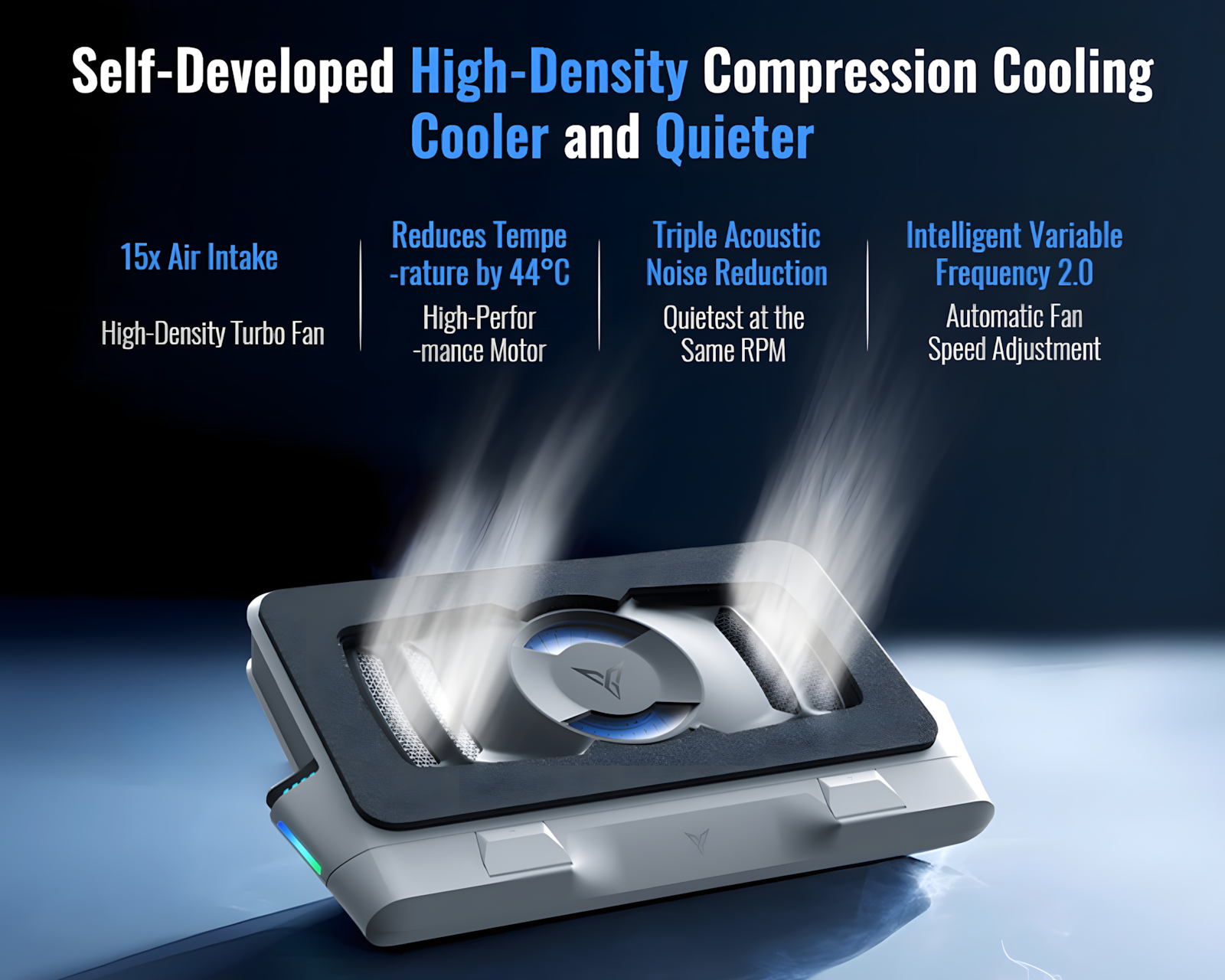 Flydigi BS2 Pro Laptop Kjøler er en kjøleplate fra Flydigi som tilbyr effektiv avkjøling for dine bærbare enheter. Med en høyytelsesmotor som senker temperaturen med opptil 44°C og en 27-blad blad som jobber med 4000 RPM, er BS2 Pro optimalisert for å forbedre avkjølingen under intense spillsesjoner. Dens smarte 2.0 autojusterende viftehastighet sikrer at luftstrømmen tilpasses etter belastning.Byggkvaliteten på BS2 Pro er høy, med en ramme som støtter horisontal plassering og gir tre nivåer av justerbart støtte. Det avtakbare høy densitets støvfilternettet sørger for at enheten holdes ren og effektiv. Kjøleplatens design er skalerbar, noe som gjør den tilpasningsdyktig for ulike størrelser på bærbare datamaskiner. Tilkoblingene er effektive, noe som gjør at enheten er lett å bruke og passer til alle gameres behov når det gjelder avkjøling og komfort.