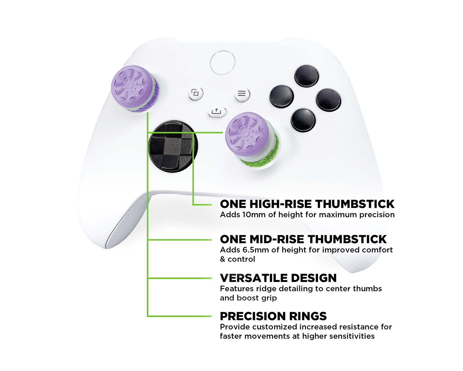 KontrolFreek Aim Boost Kit Galaxy Edition er det ultimate verktøyet for å optimalisere målet om å dominere motstandere. Ta ytelsen til neste nivå med denne unike kombinasjonen av FPS Freek Galaxy Thumbsticks og presisjonsringer. Det vakre lilla-på-sølv-fargeskjemaet og den originale laser-etsede designen gir eksepsjonelt grep og komfort, slik at du kan spille i timevis uten at hendene dine blir slitne.- Thumbstick & Precision Rings for Xbox Series/Xbox One