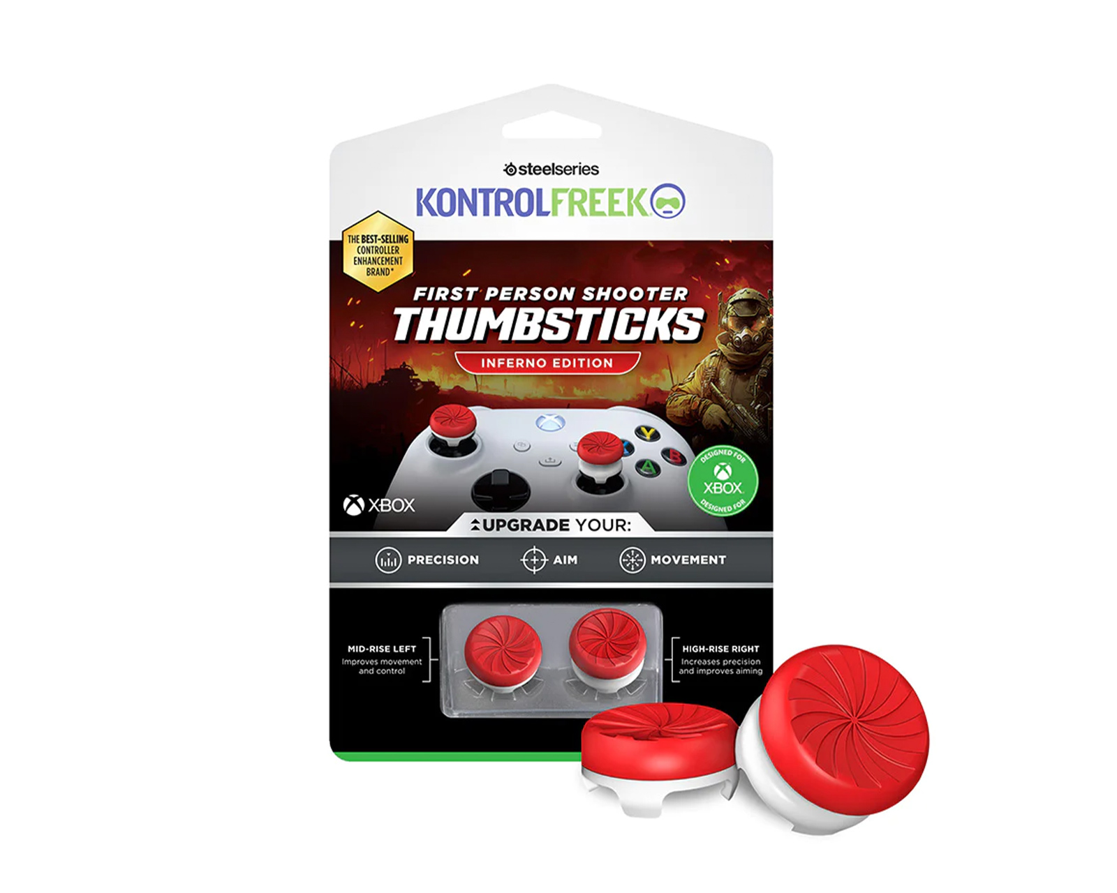 De kontrollfrie Inferno Thumbsticks tilbyr spillere på alle ferdighetsnivåer en unik måte å spille på. De middels høye pinnene gir økt komfort og kontroll når du spiller med favorittkontrolleren din. Inferno har en unik design som gir mer grep til tommelen og er den perfekte måten å maksimere spillerens ytelse. Perfekt passform for Xbox Series/Xbox One-kontrolleren.Venstre pinne: