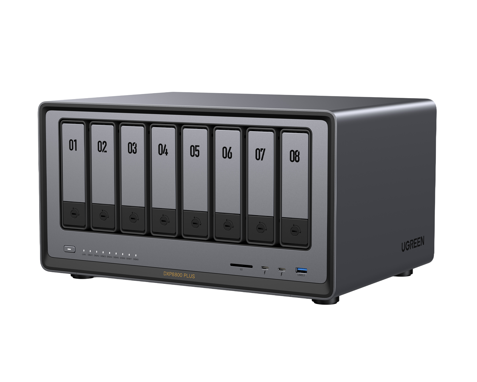 UGREEN NASync DXP8800 Plus er en lagringsenhet som kombinerer høy ytelse og omfattende kapasitet. Den drives av en 12. generasjons Intel® Core™ i5 1235u med 10 kjerner og 12 tråder, noe som gir imponerende behandlingshastigheter. Med to 10GbE-nettverksporter kan enheten oppnå en båndbredde på opptil 20G og nedlastingshastigheter på 2500MB/s. NASync DXP8800 Plus er ideell for brukere som søker effektiv databehandling og rask tilgang.Enheten har åtte SATA og to M.2 NVMe harddiskplasser og tilbyr en maksimal lagringskapasitet på 256TB, noe som gjør den egnet for store datamengder. Den støtter ulike RAID-konfigurasjoner, inkludert JBOD, RAID0, RAID1, RAID5, RAID6 og RAID10, noe som gir fleksibilitet i lagring og data gjenoppretting. UGREEN NASync inkluderer også en alt-i-ett-applikasjon for enkel håndtering av lagring, filer og bilder. Minne kan utvides opp til 64GB DDR5 for å maksimere ytelsen.