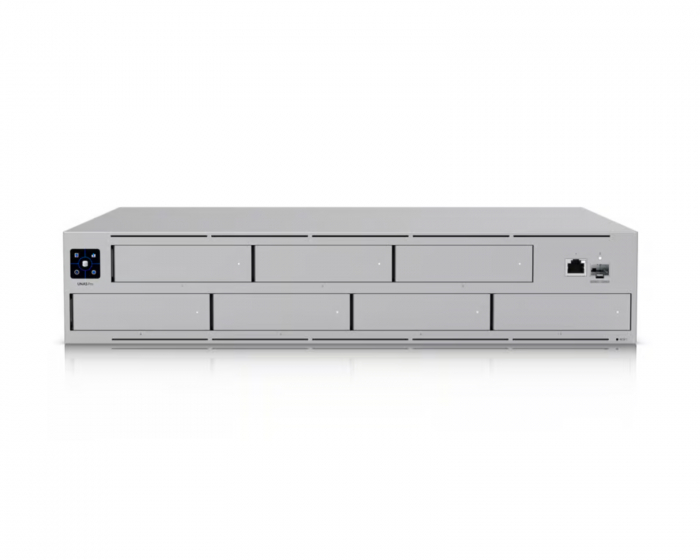 Ubiquiti UniFi UNAS Pro er en NAS-server som tilbyr effektiv og kraftig lagring. Den er utstyrt med en ARM Cortex-A57 firekjerners prosessor med en klokkefrekvens på 1,7 GHz og har 8 GB internminne, noe som muliggjør rask databehandling og multitasking. Denne enheten er ideell for bedrifter som trenger en pålitelig lagringsløsning for å håndtere store mengder data.UniFi UNAS Pro støtter både 2,5-tommers og 3,5-tommers lagringsenheter og kan håndtere opptil syv disker, inkludert både HDD- og SSD-alternativer. Den robuste designen inkluderer et slitesterkt stålkabinett som beskytter mot mekanisk belastning. Den har også innebygd Ethernet LAN-funksjonalitet for stabil nettverkstilkobling. LED-indikatorer og et innebygd display gir enkel overvåking av enhetens status.