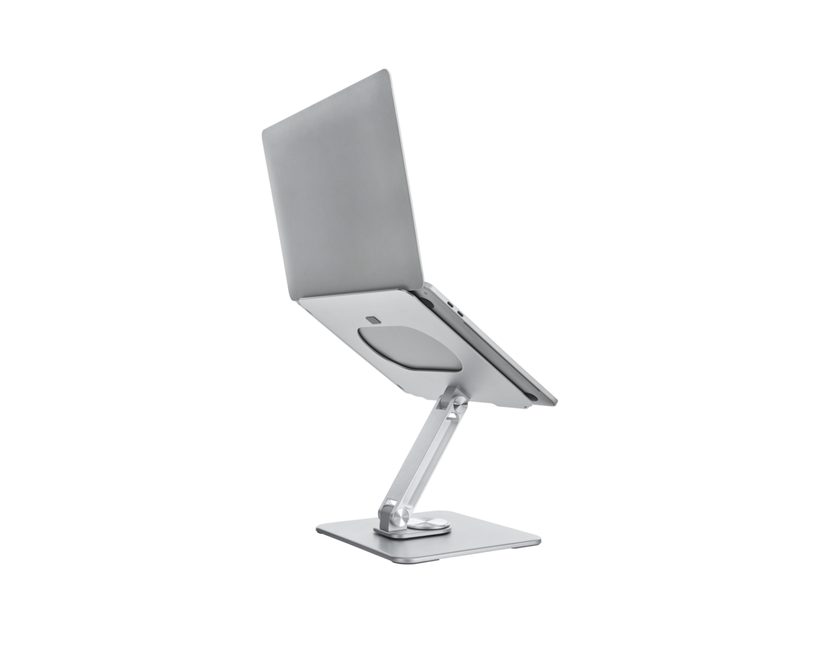 360° Rotasjonsbar Sammenleggbar Laptopstativ er et datatilbehør fra MaxMount som tilbyr et unikt design for fleksibel bruk. Dette stativet kan roteres 360 grader, noe som gjør det enkelt å dele skjermen under møter eller veksle mellom oppgaver. Det er kompatibelt med bærbare datamaskiner og nettbrett i størrelser fra 11 til 17 tommer. Den ergonomiske utformingen gjør det mulig å justere vinkelen for å oppnå optimal betraktningshøyde, og dermed forbedre brukervennligheten. Den sammenleggbare konstruksjonen letter transport og lagring.Materialet i stativet er utformet for å sikre god ventilasjon, noe som forbedrer luftsirkulasjonen og fungerer som en varmesenkende mekanisme. Anti-skliputer finnes for å forhindre skader på overflater, og en sikkerhetskantstopper beskytter enhetene mot å gli av. Dens justerbare vinkler gir brukerne mulighet til å finne den mest komfortable posisjonen for langvarige økter. Stativet er helt sammenleggbart, noe som gjør det lett å ta med seg.