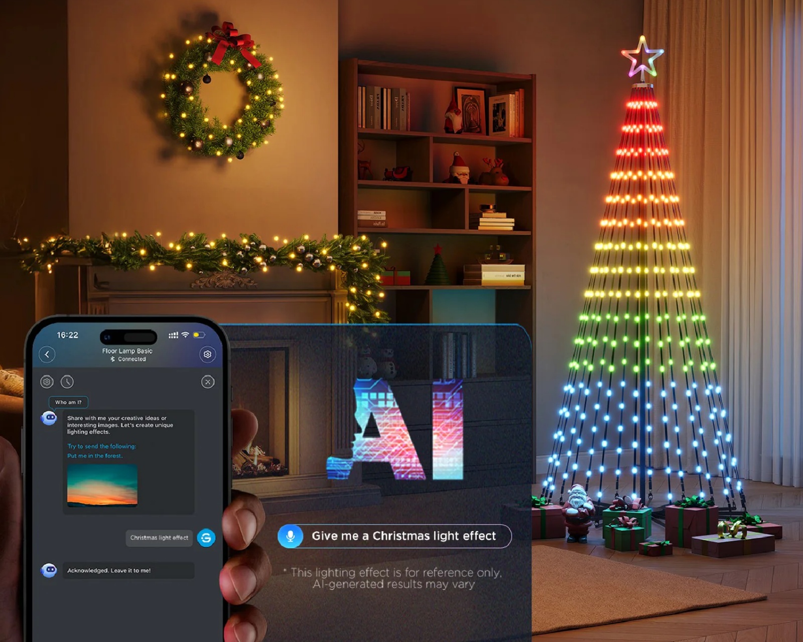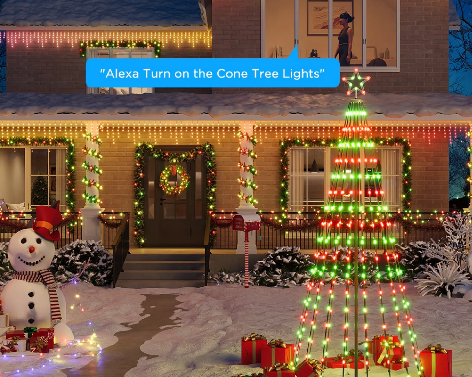 Cone Tree Lights er en lysdekorasjon fra Govee som etterligner et juletre og gir en festlig stemning i alle miljøer. Disse lampene er designet for å enkelt skape en glad og koselig atmosfære i løpet av høytidene med en smidig installasjon og smarte kontrollmuligheter. Med støtte for RGBIC-teknologi tilbyr disse lysene over 16 millioner farger for personlig tilpasning og kan styres via Govee Home App.Lysene er bygget for å tåle utendørs bruk og har en beskyttet konstruksjon mot vind og er IP67-vannavstøtende, noe som gjør at de tåler både regn og snø gjennom hele vintersesongen. Med 82 forhåndsinnstilte scenemodi kan lyset tilpasses for forskjellige anledninger, og den innebygde mikrofonen gjør at de kan synkroniseres med musikk uten ekstra utstyr. Det finnes også AI-baserte funksjoner for å lage skreddersydde lyseffekter.