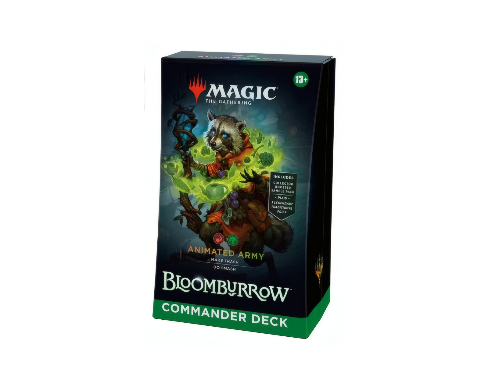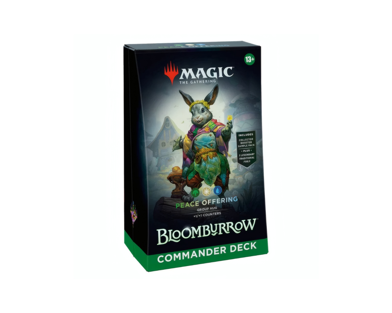 Bloomburrow Commander Deck er et ferdig kortspill fra Magic: The Gathering som inneholder 100 magiske kort designet for strategisk spilling med opptil fire spillere. Den kommer med en blanding av kort inkludert et borderless foil face card, et borderless Imagine: Courageous Critters foil card og 98 ikke-foil kort, noe som gjør den lett tilgjengelig for både nybegynnere og erfarne spillere. Med dette dekket kan spillerne delta i en kamp der mindre skapninger som mus, frosker og flaggermus står i sentrum, noe som gjør spillet til en unik opplevelse av styrke og strategi.Deckens byggkvalitet er høy med tydelig trykte kort og et robust spillformat, og den inneholder nye kort som forsterker spillopplevelsen med 15 nye magiske kort. I tillegg til kortene inngår et kort sammenstillingspakke, tokens og en livskalkulator som letter spillet. Deckboxen rommer opptil 100 kort og er praktisk for oppbevaring og transport.
