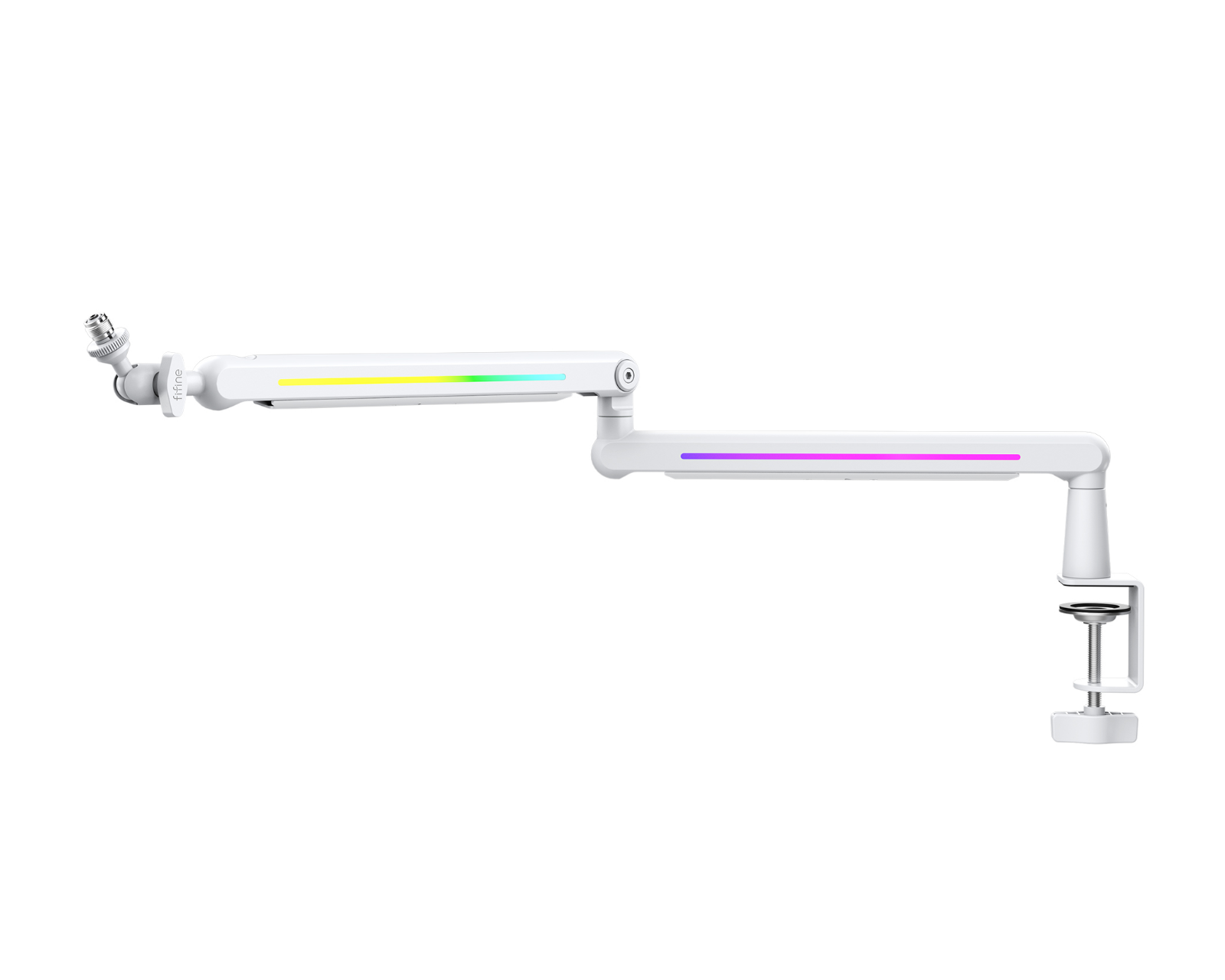 BM88 Pro er en mikrofonarm fra Fifine. Den tilbyr et høyprofilsdesign som forbedrer din streaming- og innspillingsmiljø. Enheten er utstyrt med en 360-graders roterende mikrofonholder som sikrer en sømløs innspillingsopplevelse. Mikrofonarmen er laget for å passe de fleste skrivebord og benker med sine 3/8"- og 5/8"-adaptere.Den er kompatibel med populære mikrofoner som HyperX, Blue Yeti, Shure SM7B og Rode, noe som gjør den allsidig for ulike bruksområder. Den justerbare designen inkluderer et roterende og svingende kuleledd for enkel tilpasning, som gir en helling fra -90° til +90° og full 360° rotasjon. Også kabelhåndtering er innebygd for et organisert arbeidsmiljø.