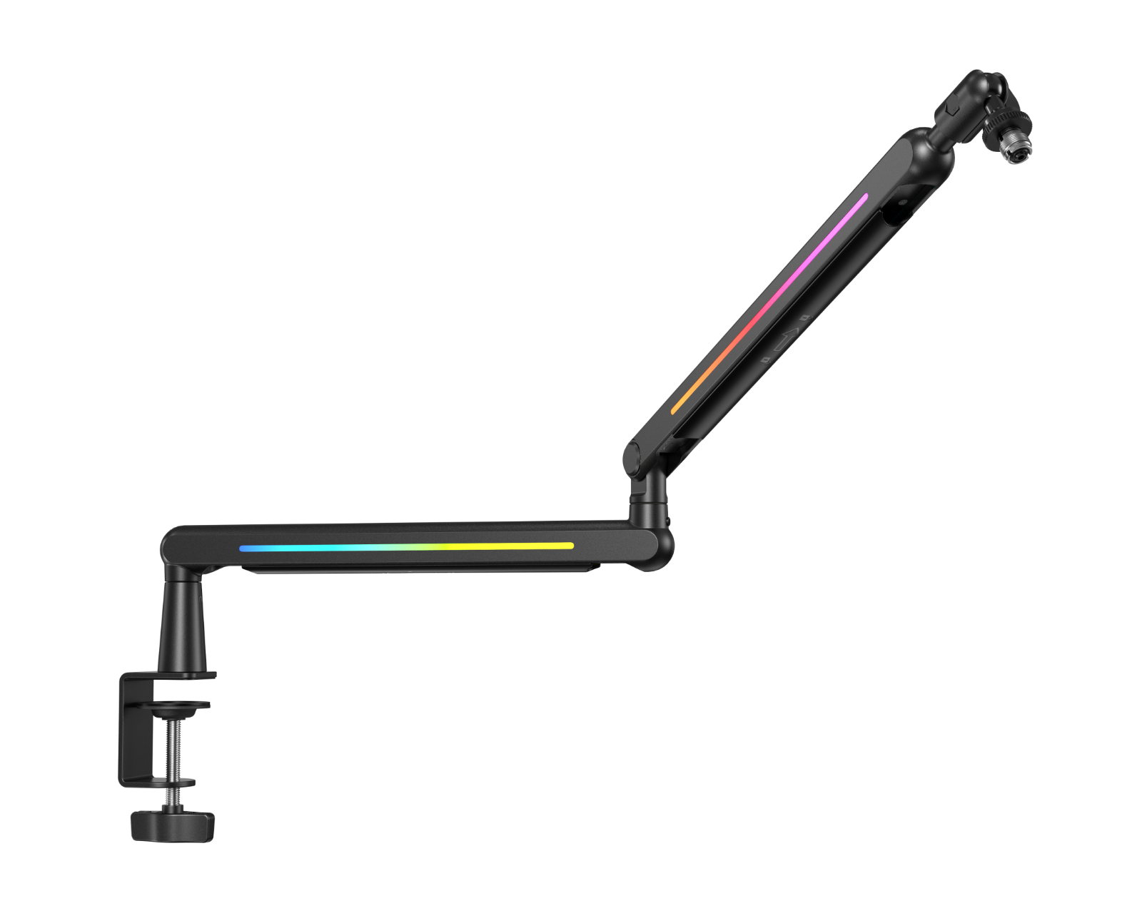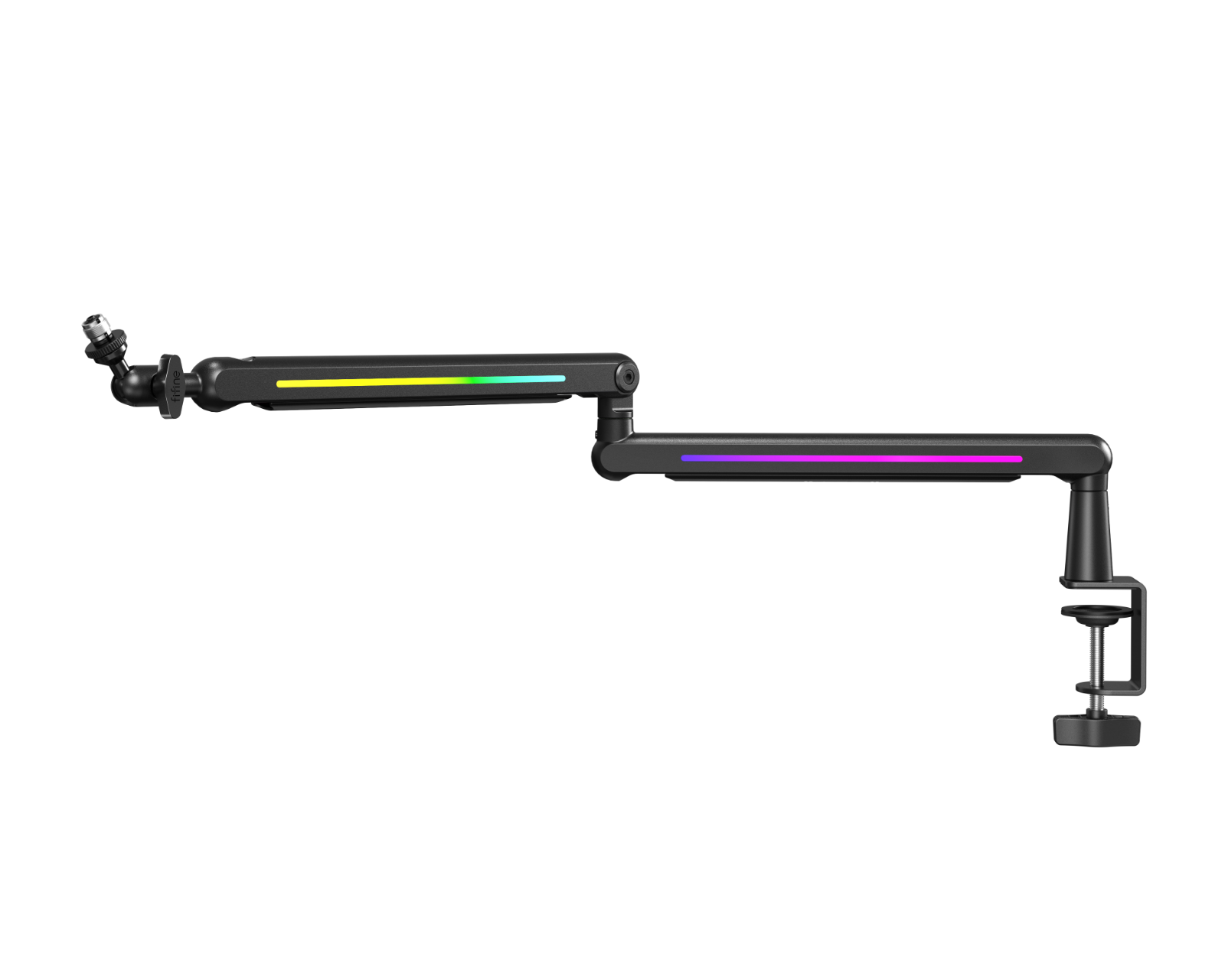 BM88 Pro er en mikrofonarm fra Fifine. Den tilbyr et høyt profildesign som forbedrer din streaming- og innspillingsmiljø. Enheten er utstyrt med en 360-graders roterende mikrofonholder som sikrer en sømløs innspillingsopplevelse. Mikrofonarmen er laget for å passe de fleste skrivebord og benker med sine 3/8"- og 5/8"-adaptere.Den er kompatibel med populære mikrofoner som HyperX, Blue Yeti, Shure SM7B og Rode, noe som gjør den allsidig for ulike bruksområder. Den justerbare designen inkluderer et roterende og svingende kuleledd for enkel tilpasning, som gir en helning fra -90° til +90° og full 360° rotasjon. Også kabelhåndtering er innebygd for et organisert arbeidsmiljø.