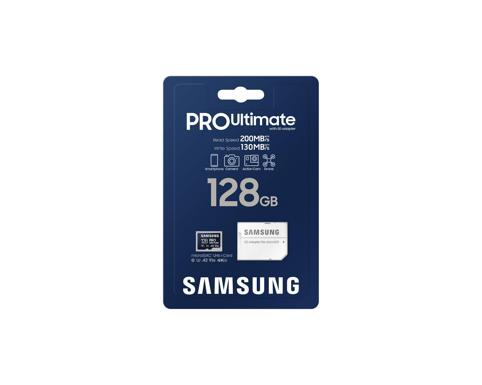 MicroSD PRO Ultimate er et høyytelsesminnekort fra Samsung, designet for å møte behovene til gamere og skapere. Med en imponerende lagringskapasitet på 128 GB muliggjør dette kortet lagring av opptil 7,5 timer med 4K/UHD-video eller 67 518 bilder i FHD. Utstyrt med en lesehastighet på opptil 200 MB/s og skrivehastighet på 130 MB/s, er dette kortet perfekt for smarttelefoner, droner og actionkameraer.PRO Ultimate-kortet tilbyr robusthet og allsidighet, med seks beskyttelsesfunksjoner inkludert vanntetthet, temperaturbestendighet, røntgensikkerhet og støtsikkerhet. Det har en størrelse på 15 x 11 x 1 mm og veier bare 0,26 g, noe som gjør det både lett og enkelt å bære. Med sin UHS-I U3-klassifisering garanterer det høy hastighet for 4K/UHD og seriebilder, noe som gjør at brukere kan fange og lagre de mest intenst detaljerte øyeblikkene uten å kompromisse med ytelse.