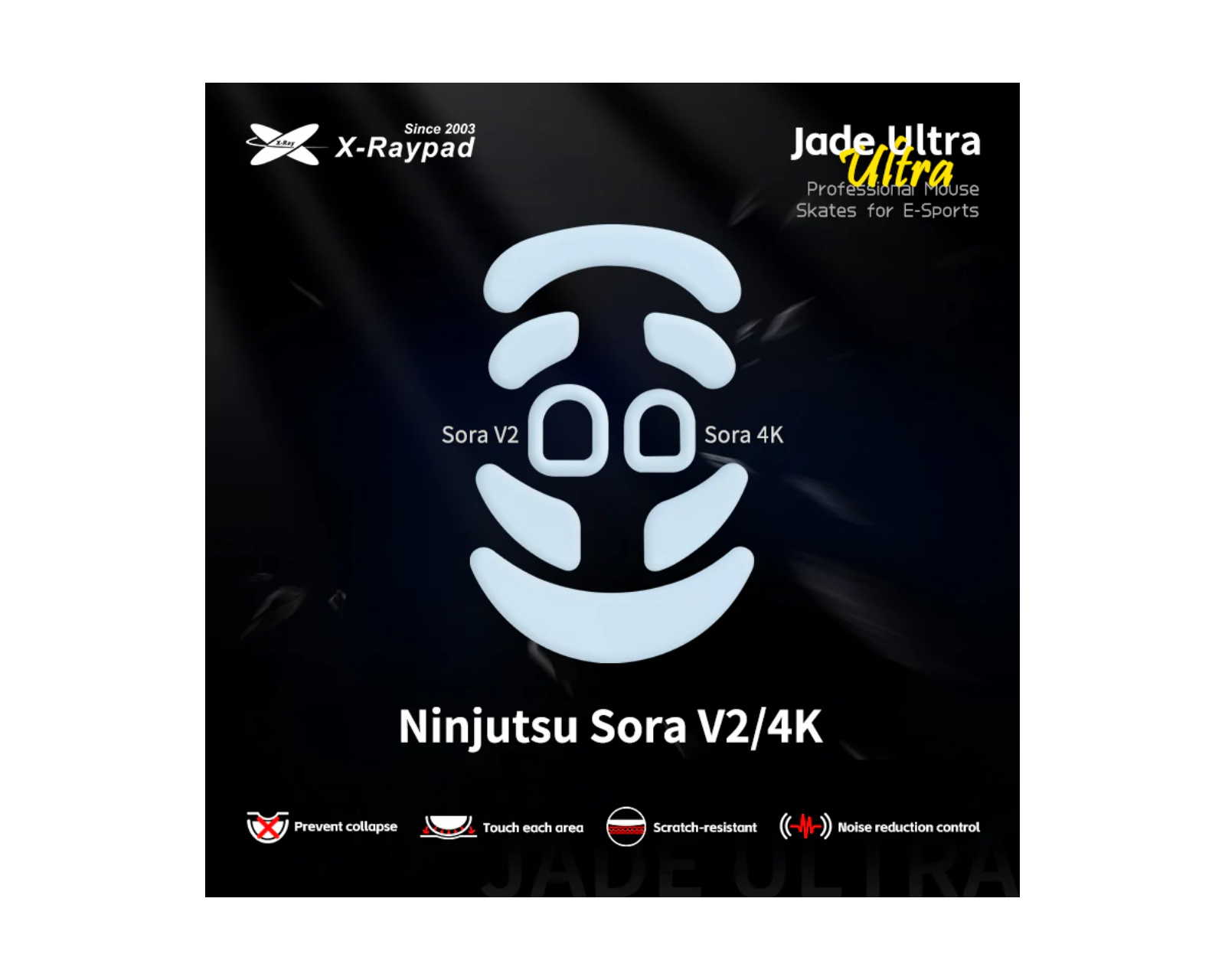 Jade Ultra Skates for Ninjutsu Sora V2/4K er et sett med museføtter fra X-raypad som tilbyr en 1mm tykk overflate av ren PTFE for forbedret ytelse. Disse skøytene er designet for å forhindre kollaps og bidrar til en stillere og mer stabil bruk ved å bruke et ekstra fyllingslag for å dempe lyd og vibrasjoner. Settningen leveres med to sett, noe som gjør den ideell for gamere som søker økt kontroll og presisjon under spilling.Jade Ultra-serien er spesifikt designet for å brukes med både stoff- og plastmusmatter, men er ikke egnet for glassflater. Museføttene er også ripefrie og tilbyr en jevn glideflate for å lette bevegelser i alle retninger. Med den nøyaktige tykkelsen på 1mm og den fine PTFE-overflaten, gir disse skøytene optimal kontakt med musematten for å sikre at hver bevegelse registreres nøyaktig.