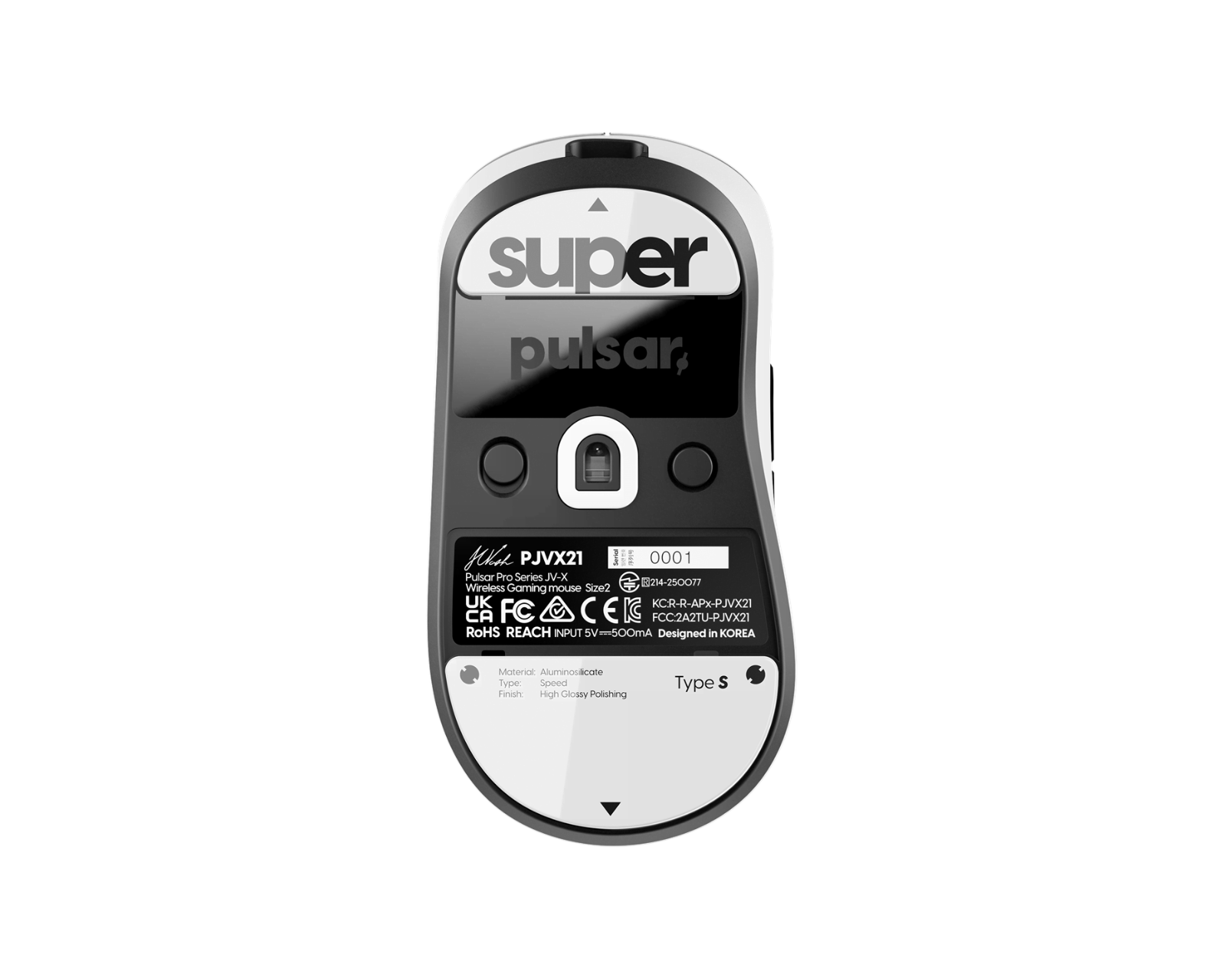 Glass Skates Type-S før JV-X er et museglide-sett fra Superglide. Disse glidytene er laget av sterkt aluminiumsilikatglass, som gir en veldig glatt overflate for mikrosikt og sporing. De er designet for spillere som søker en stabil og rask glideopplevelse uten å slites like raskt som tradisjonelle PTFE-føtter.Materialet i Superglide består av herdet glass med en ny mikrostruktur som muliggjør en rask og smidig glidning, samt utmerket stoppkraft i forskjellige spilltempoer. Den avrundede kantdesignen tilbyr en mykere følelse ved bruk. Disse glidytene har lang levetid og kan brukes nesten permanent uten betydelig slitasje. Vær oppmerksom på at disse skøytene ikke anbefales for bruk på glass musematter.