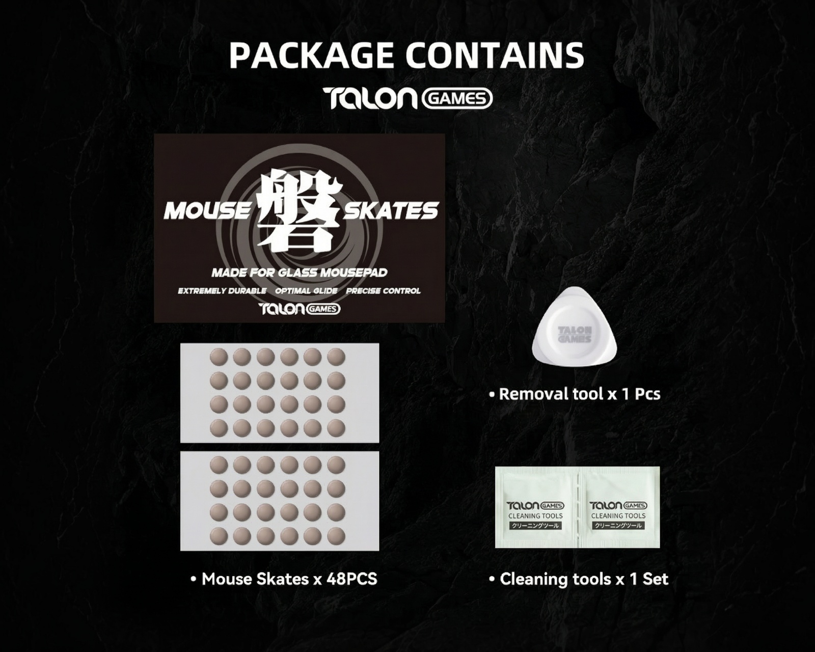Iwa – Dot Mouse Skates for glassmusematte er utviklet for å forbedre museytelsen og tilbyr optimal gli på glassoverflater. Disse skatesene er laget av UPTFE‑materiale, som gir høy slitestyrke og en sømløs gliopplevelse uten å gå på bekostning av kontroll.