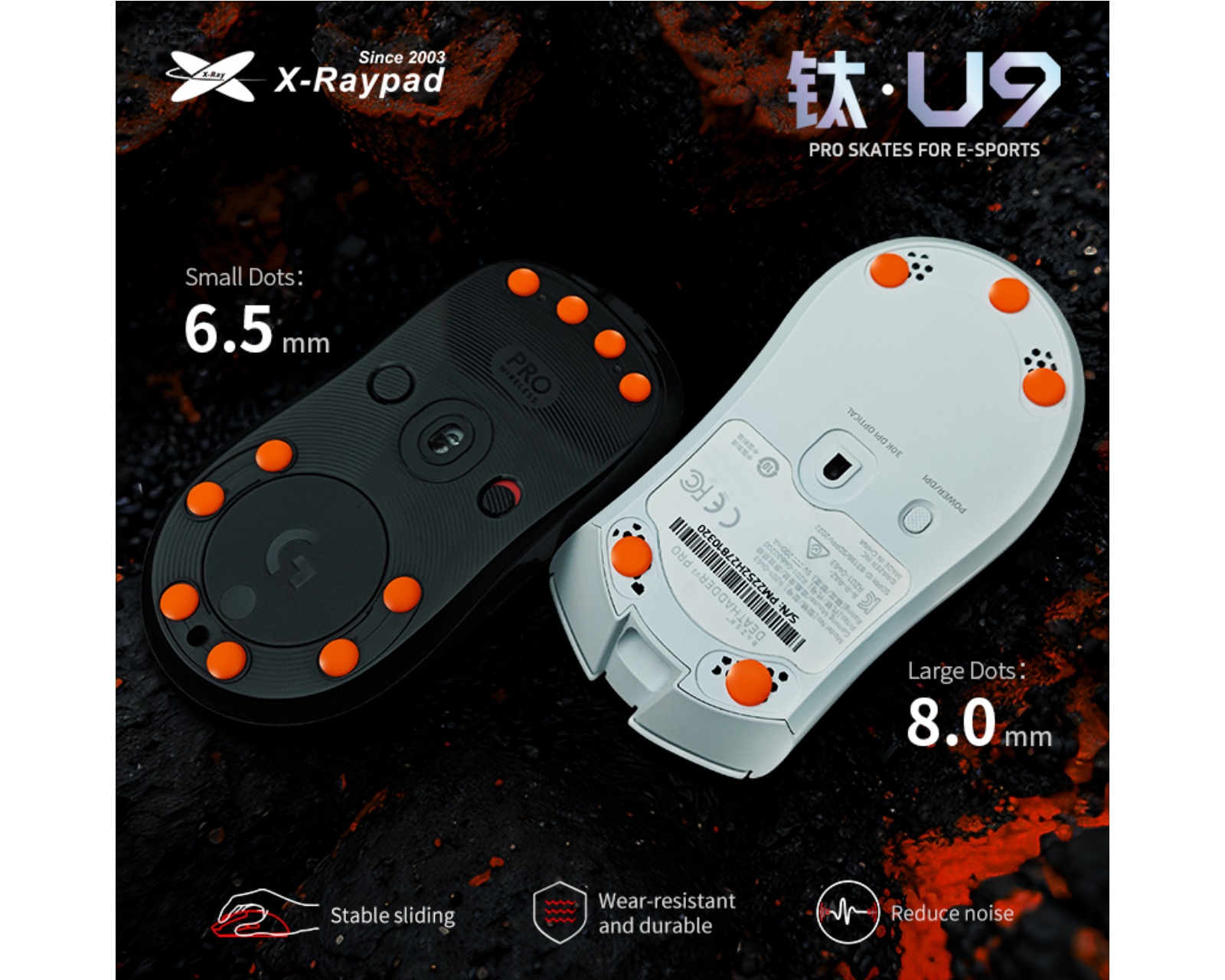 U9 Air 6.5mm er en dot skate fra X-raypad som tilbyr høy holdbarhet og stabilitet. Dette produktet er spesielt utviklet for å være kompatibelt med glassmusematter, samtidig som det fungerer med stoffmusematter. Med en diameter på 6,5 mm og et flerlagssystem gir U9 Air jevn og nøyaktig avfyring for spillere som søker presisjon i hver bevegelse.U9 Air er konstruert for å tåle slitasje, og bruker ultrahøymolekylær polyetylen (UHMWPE) for å sikre lang levetid og minimal vingling. Denne skøyten er designet for å gi smidighet og respons, noe som resulterer i mer presis kontroll. Skøyten har et lyddempende lagdesign for å redusere lyden av glidning, noe som bidrar til en mer fokusert avansert spillopplevelse. U9 Air inkluderer også to alkoholputer og to kluter for fjerning av selvklebende stoffer for enkel installasjon og vedlikehold.