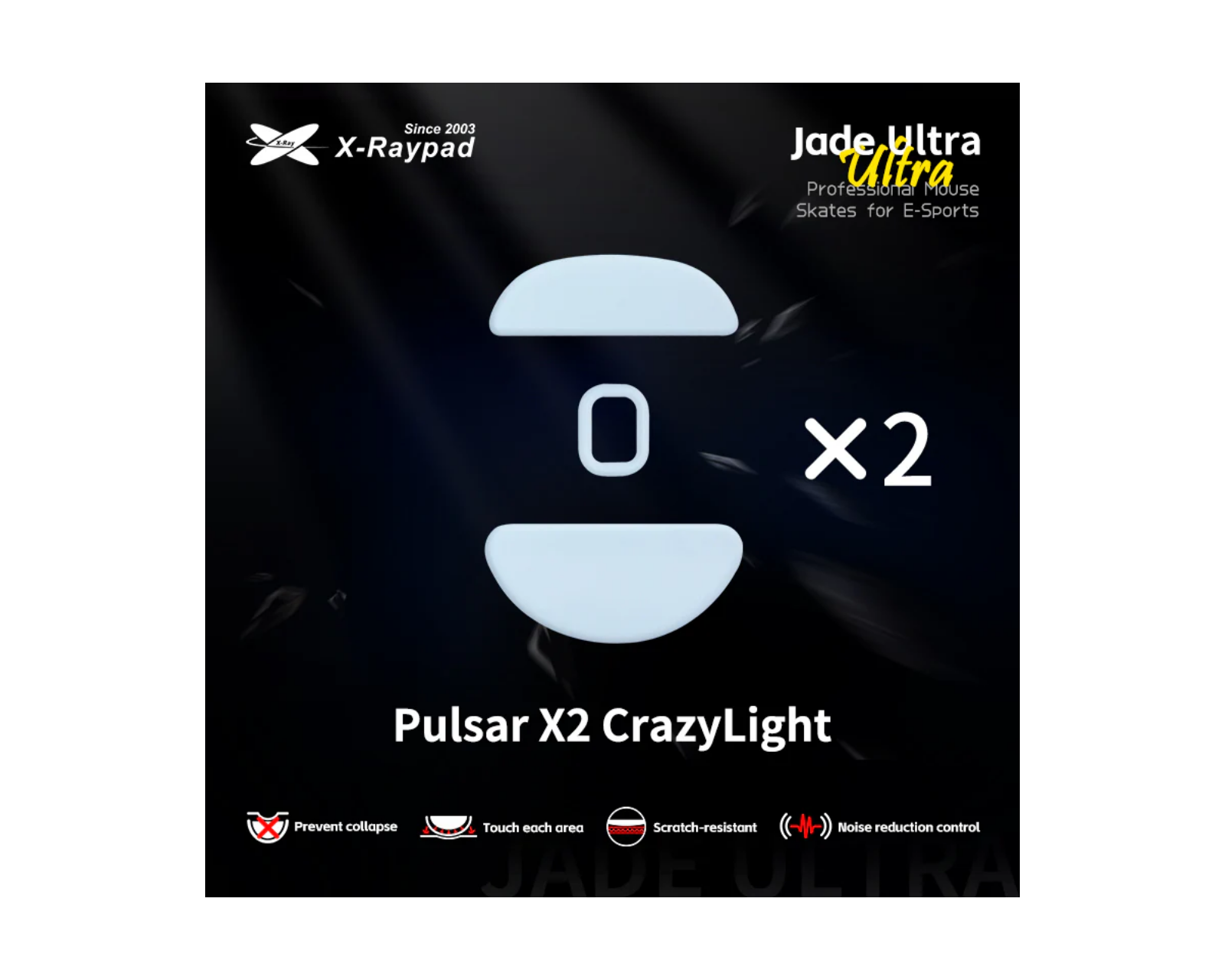 Jade Ultra Skates er et sett med musefødder fra X-Raypad, designet for Pulsar X2 CrazyLight. Disse føttene har en tykkelse på 1 mm (+/-0,1 mm) og er laget av rent PTFE-materiale, som gir en holdbar og glatt overflate. De inkluderer en ekstra anti-kollaps fyllingsteknologi som forbedrer lyd- og vibrasjonsdemping. Jade Ultra Skates er kompatible med både stoff- og plastmusmatter og er ikke egnet for glassflater. Sett medfølger to sett føtter for å sikre langvarig ytelse.Materialet er nøye utvalgt for å motstå riper, noe som bidrar til den pålitelige kvaliteten på føttene. Den PTFE-baserte overflaten minimerer friksjon mot underlaget, noe som gir spillere en forbedret og mer kontrollert musbevegelse. Den dempende teknologien reduserer lydnivået under bruk, og skaper et mer stille arbeidsmiljø. Med en presisjon som gjør at hver del av overflaten utnyttes effektivt, er disse føttene designet for å optimalisere både hastighet og følelse.