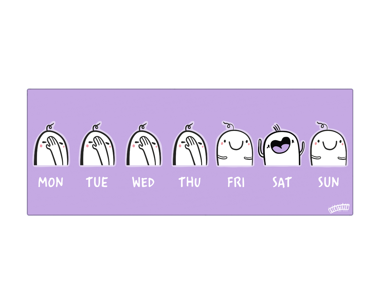 WEEKDAYS er en musematte fra Evensteven som tilbyr en ekstra bred overflate for både mus og tastatur. Den er laget av et smidig ultraweave-stoff som sikrer en presis og jevn glidfunksjon for musen. Musematten har en halkfri underside som forhindrer at den glir på skrivebordet, noe som gir en stabil plattform for gaming. Den forsterkede sømmen rundt kantene bidrar til økt holdbarhet og reduserer risikoen for slitasje.Musematten er designet for å beskytte bordet mot riper og flekker, noe som bidrar til å holde arbeidsflaten ren og velholdt. Den glatte overflaten tillater en nøyaktig bevegelse for alle typer mus og kompatibel gamingutstyr, noe som gjør den ideell for gamere og kontorarbeidere.