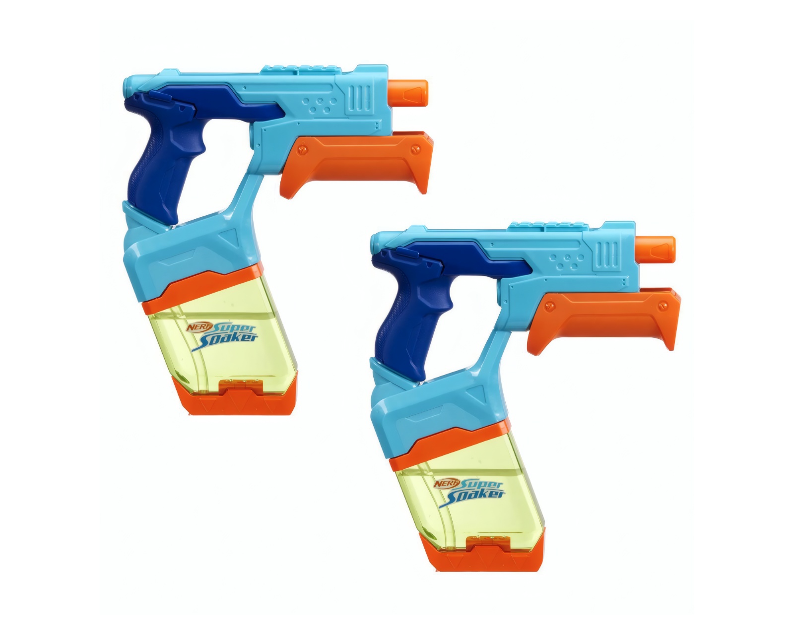 Super Soaker Dunk Fill 2-pakning er et vannpistolsett fra Nerf som tilbyr raskfyllte tanker for umiddelbar vannglede. Settet inneholder to vannpistoler med en kapasitet på 300 ml per gjennomsiktig tank, noe som gjør dem ideelle for utendørsaktiviteter og vannleker. Utformingen er enkel å bruke, perfekt for barn som vil ha moro på varme dager.Denne vannpistolen er utviklet for å håndtere direkte påfylling ved å dyppe tankene i vann. Den brukervennlige pumpen frigjør vann i store mengder, noe som gjør hver kamp dynamisk og spennende. Den robuste konstruksjonen av pistolene sikrer holdbarhet under lek. I kombinasjon med den gjennomsiktige tankdesignen kan brukeren enkelt se vannivået og unngå uventet påfylling. Settet fremmer aktiv lek og ungdommelig interaksjon, noe som gjør det til en utmerket aktivitet for treff med venner og familie.