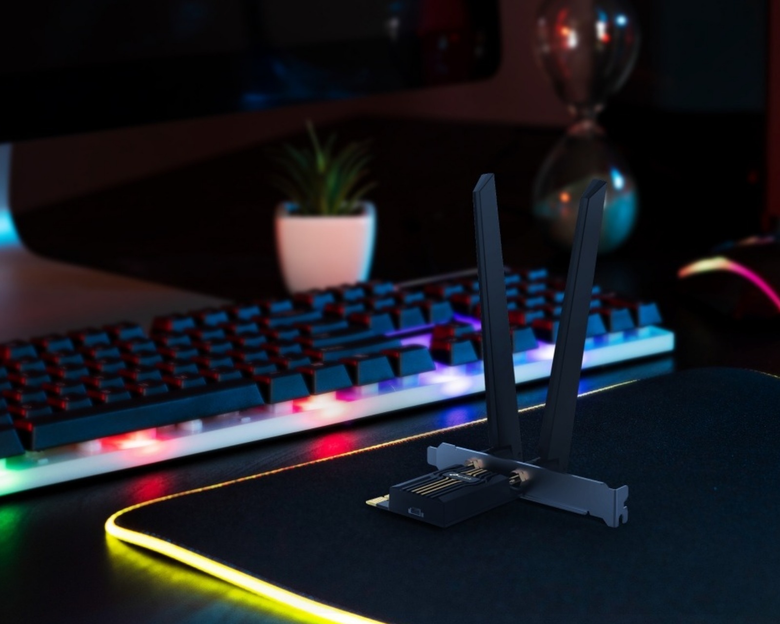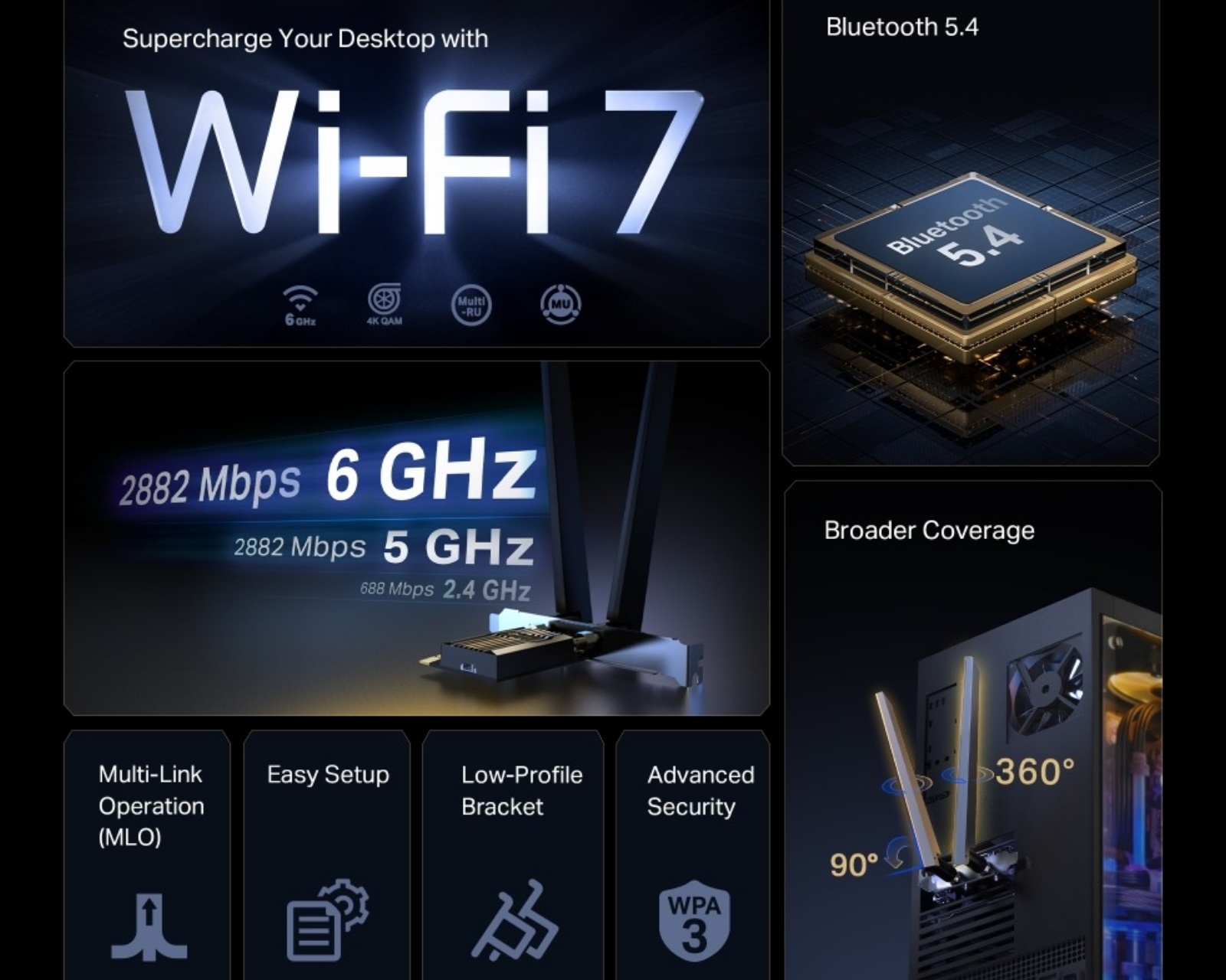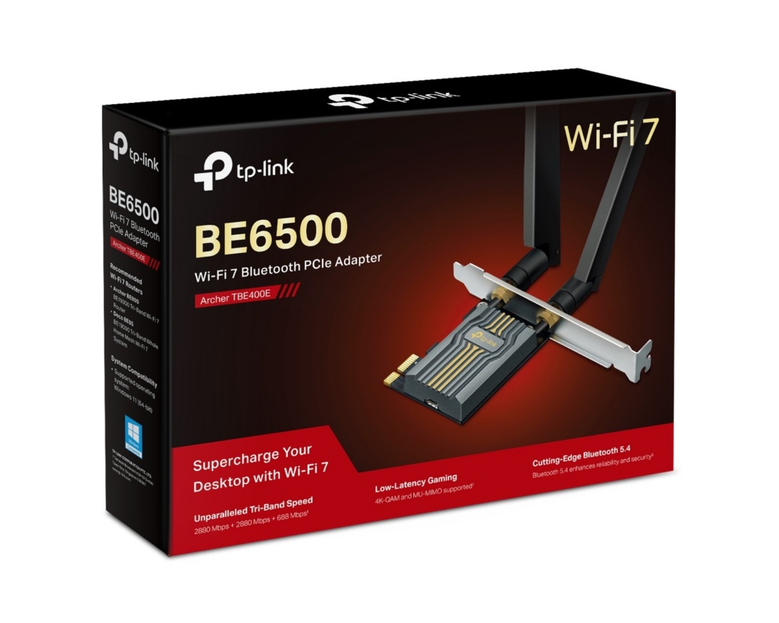 En adapter fra TP-Link, designet for å gi rask og stabil internettforbindelse. Med en imponerende hastighet på opptil 2882 Mbps på både 6 GHz og 5 GHz bånd, samt 688 Mbps på 2,4 GHz, sikres en effektiv tilkobling for alle dine enheter.Adapterens byggekvalitet fremheves av de to kraftige høyeffektsantennene som gir forbedret signalstyrke og vidstrakt Wi-Fi-dekning. OFDMA og MU-MIMO teknologi minimerer forsinkelse og gjør at flere enheter kan kommunisere med ruteren samtidig, noe som er spesielt gunstig for gamere og streaming. Med den nyeste WPA3 sikkerhetsteknologien beskyttes din nettverksinformasjon effektivt mot inntrengning. Adapteren er også utstyrt med en lavprofilbrakett, noe som gjør at den passer i kompakte datakabinetter, og installasjonen er smidig takket være en brukervennlig programvareinstallasjon.