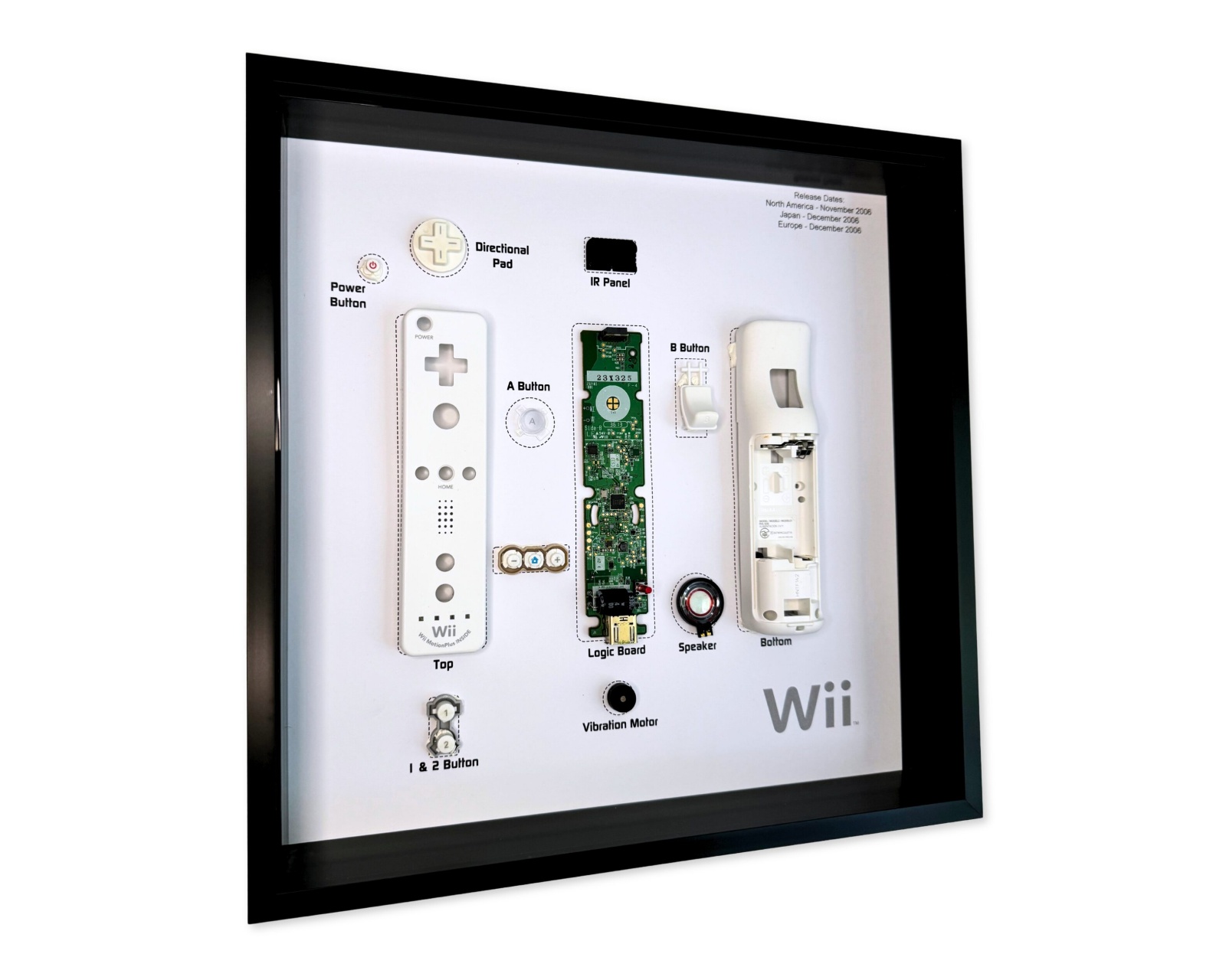 Retro Art Nintendo Wii Remote Controller Display er et produkt fra GRC som har som mål å vise frem den ikoniske Wii-kontrollen. Denne displayen tilbyr en stilren og funksjonell løsning for den som ønsker å fremheve sitt spilleutstyr med stil. Den er spesielt designet for gamere og entusiaster av retro-spill som vil bevare nostalgiske minner. Displayen er laget av høykvalitetsmaterialer som sikrer holdbarhet og lang levetid.Den er konstruert for å gi et trygt og stabilt fundament for kontrolleren, noe som gjør at den står stabilt uansett om den plasseres på hyller, bord eller vegger. Med en nøye utarbeidet design fremhever den alle detaljer i styringskontrollens form og funksjon, hva som gjør at den blir en fin dekorasjon i hvilket som helst rom.