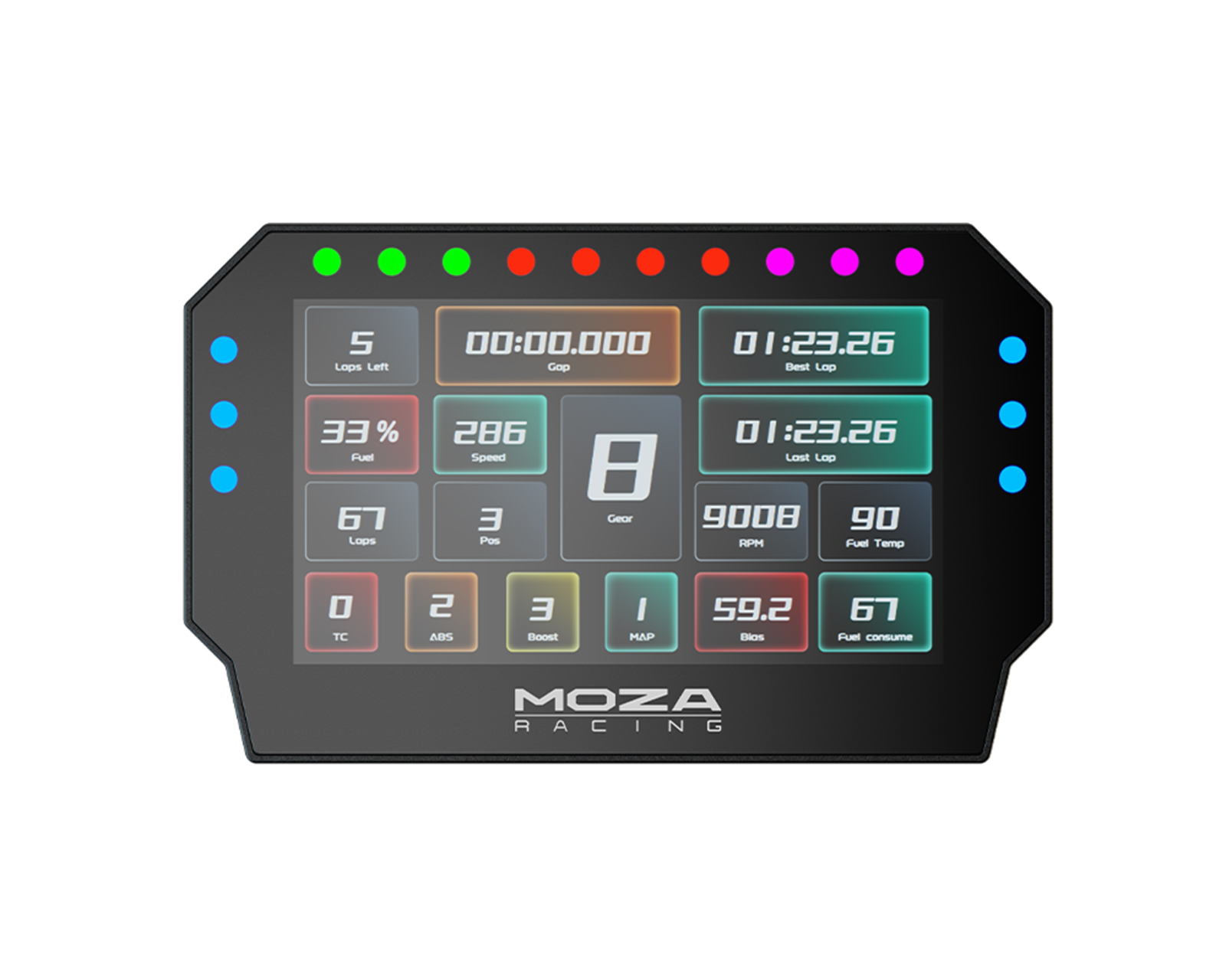 MOZA CM2-dashbordet er et revolusjonerende svømmeracingtilbehør som kombinerer innovasjon og funksjonalitet. Med et tilpassbart grensesnitt via MOZA Pit House-programvare, en 5-tommers høyoppløselig berøringsskjerm og avansert RGB-belysning for løpssignaler, tilbyr den en uslåelig racingopplevelse med sanntidspresisjon.