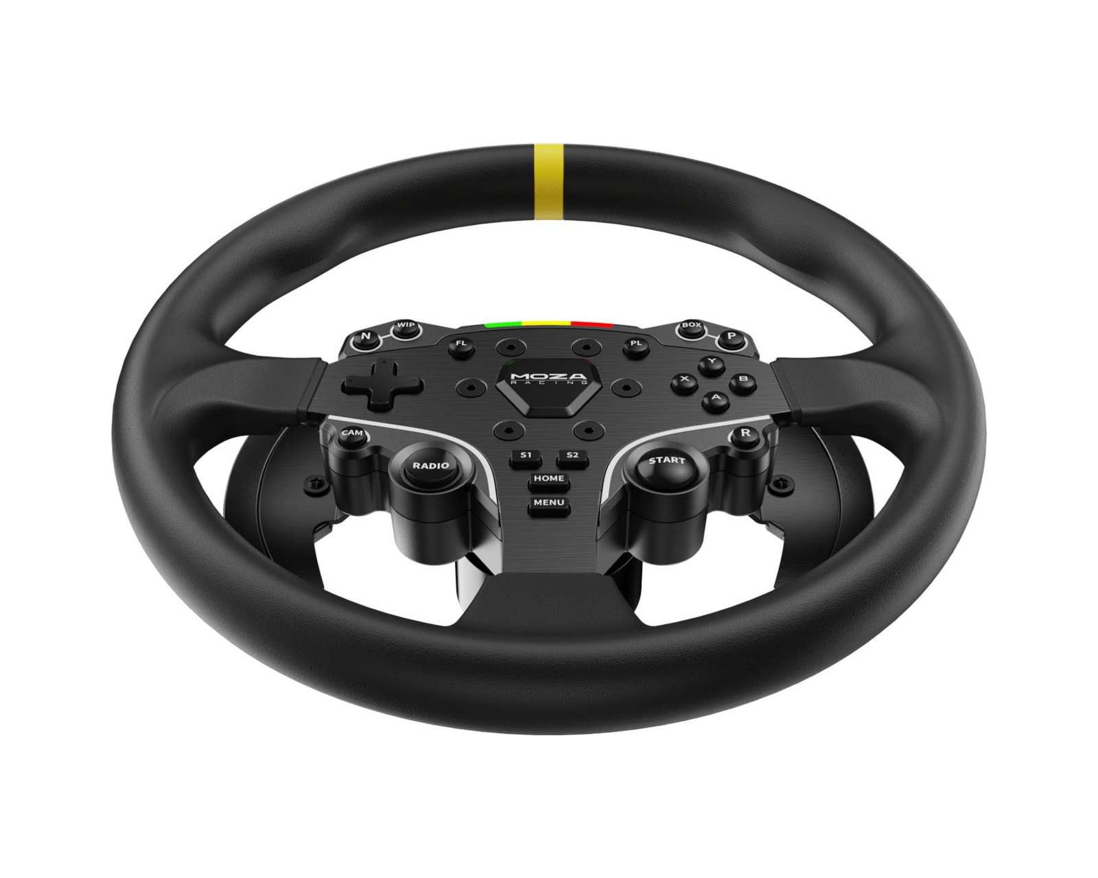 Moza Racing 12-tommers runde rattmodell fra Moza Racing er designet for å gi en mer realistisk kjøreopplevelse for gamere og entusiaster. Med en diameter på 12 tommer (305 mm) tilbyr hjulet en økt størrelse i forhold til det originale ES-hjulet, noe som nærmer seg dimensjonene for en ekte bil. Den ergonomiske utformingen med håndtak uten sømmer sikrer komfort under lengre spillsesjoner, noe som gjør den spesielt attraktiv for drifting-entusiaster.Hjulet er laget av aluminiumlegering av flykvalitet, noe som gir både holdbarhet og stivhet for en mer responsiv spillopplevelse. Håndtakene i mikrofiberlær er omsorgsfullt innpakket for å maksimere grepfølelsen og bevegelsen under intensive spillsesjoner. Den totale vekten er 850 g, noe som bidrar til et lavt treghetsmoment og en forbedret evne til å gjenskape veidetaljer. For ekstra komfort med det større hjulet medfølger også girspake-forlengelsesblokker for å redusere avstanden mellom hjulet og hendene.
